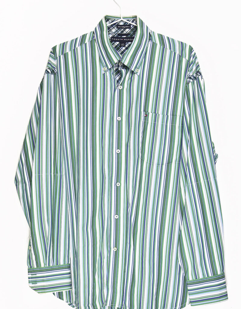 Tommy Hilfiger blue and green vertical lines shirt – L