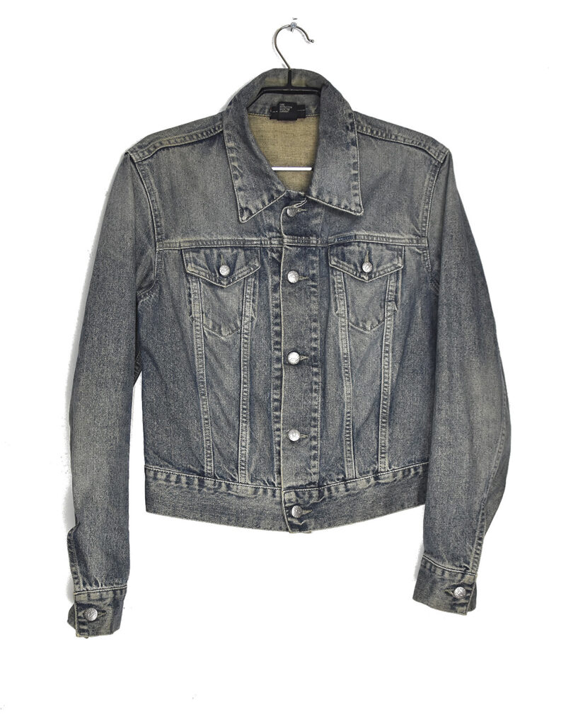 NB grey distressed denim jacket – S