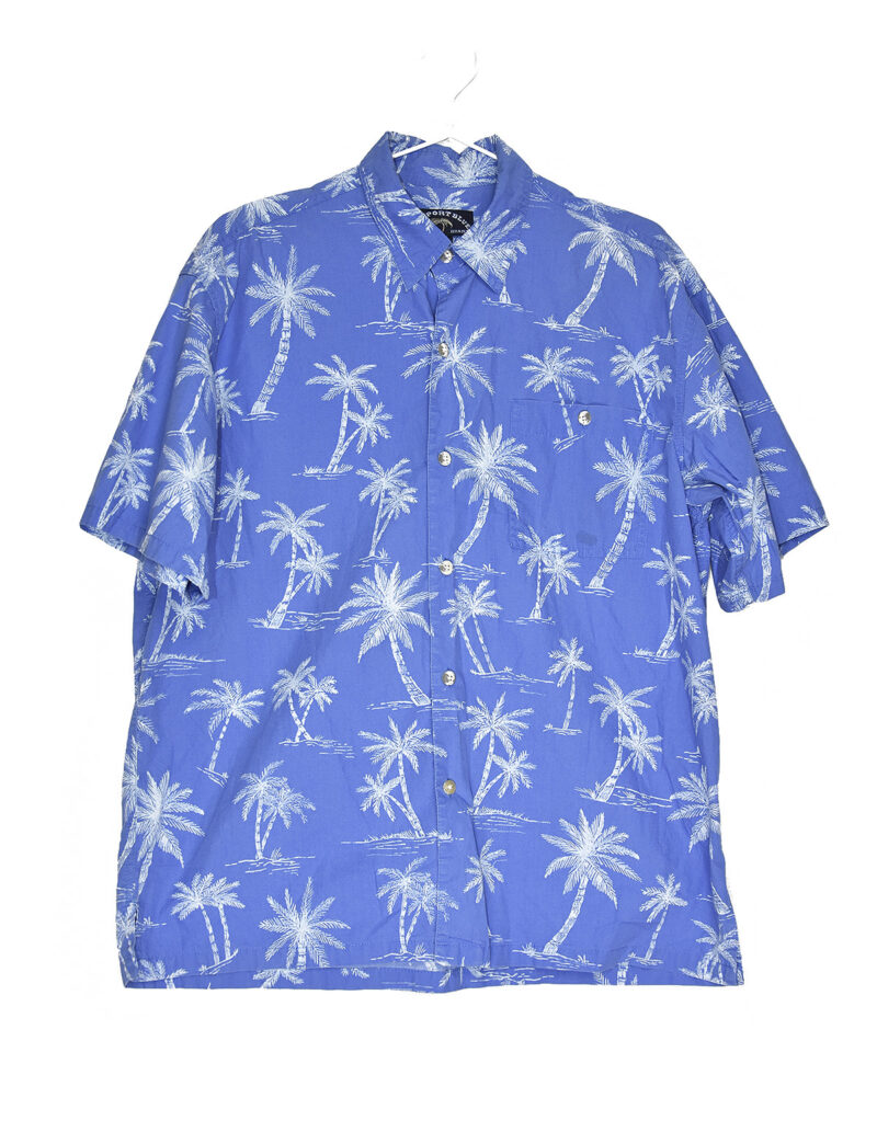 Hawaii white palms print blue shirt – M