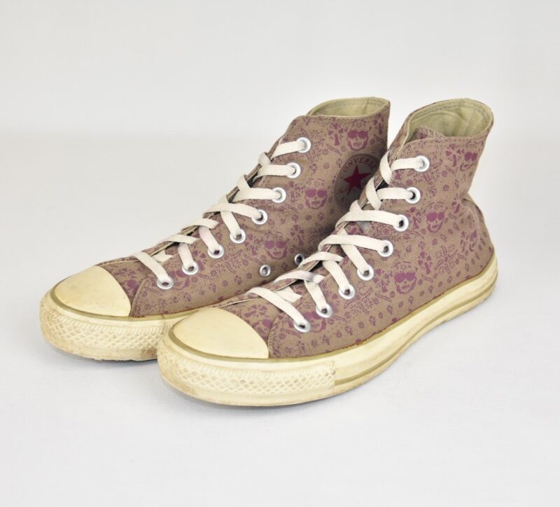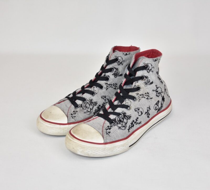 Converse all stars grey and red skulls high shoes