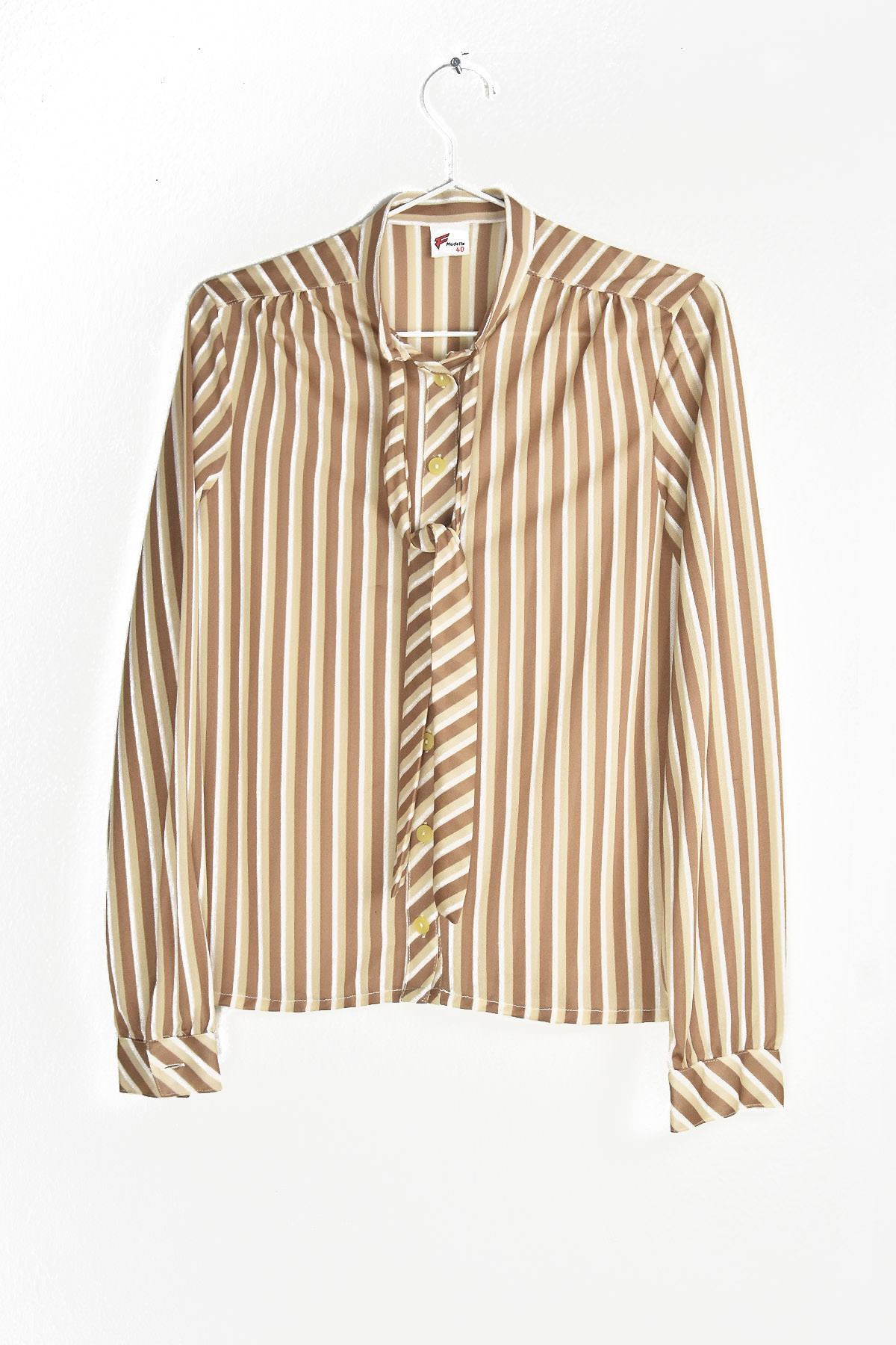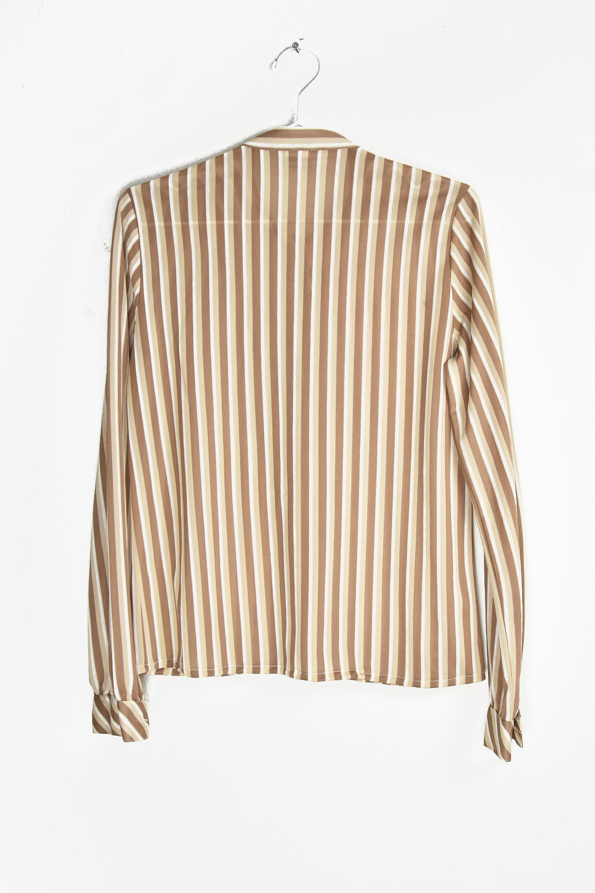 Embrace the groovy vibes with this retro-inspired 70’s blouse. Its captivating vertical lines in brown and light cream create a flattering silhouette, while the lightweight fabric ensures all-day comfort. Perfect for adding a touch of vintage charm to your wardrobe, this blouse is a must-have for fashion-forward individuals seeking a unique and stylish statement piece.