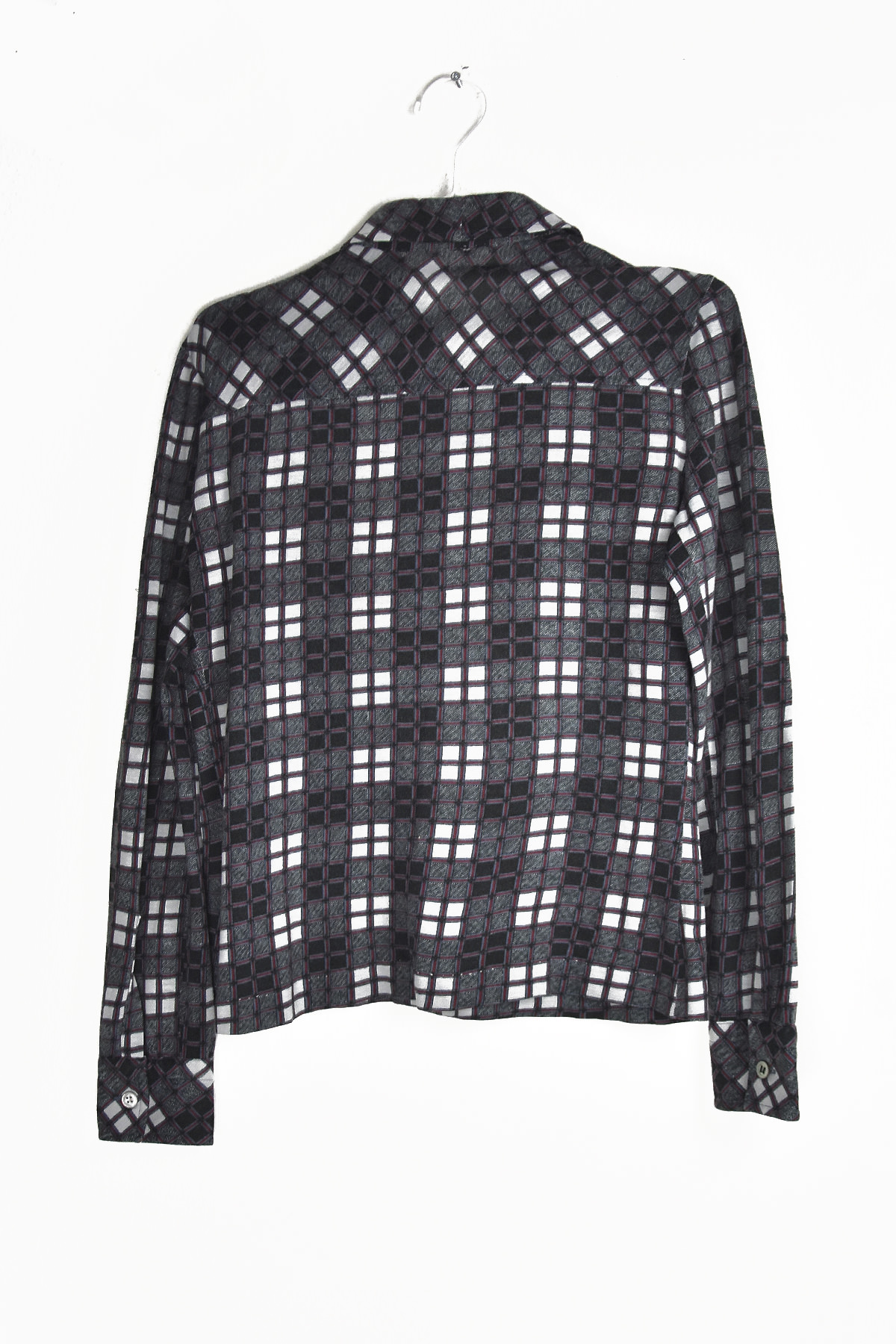 Embrace the groovy vibes with our 70’s checkered blouse in timeless black and white. Its retro design evokes nostalgia, while its lightweight fabric ensures comfort all day long. The bold checkered pattern adds a touch of edge to any outfit, making it a versatile piece for both casual and dressy occasions.