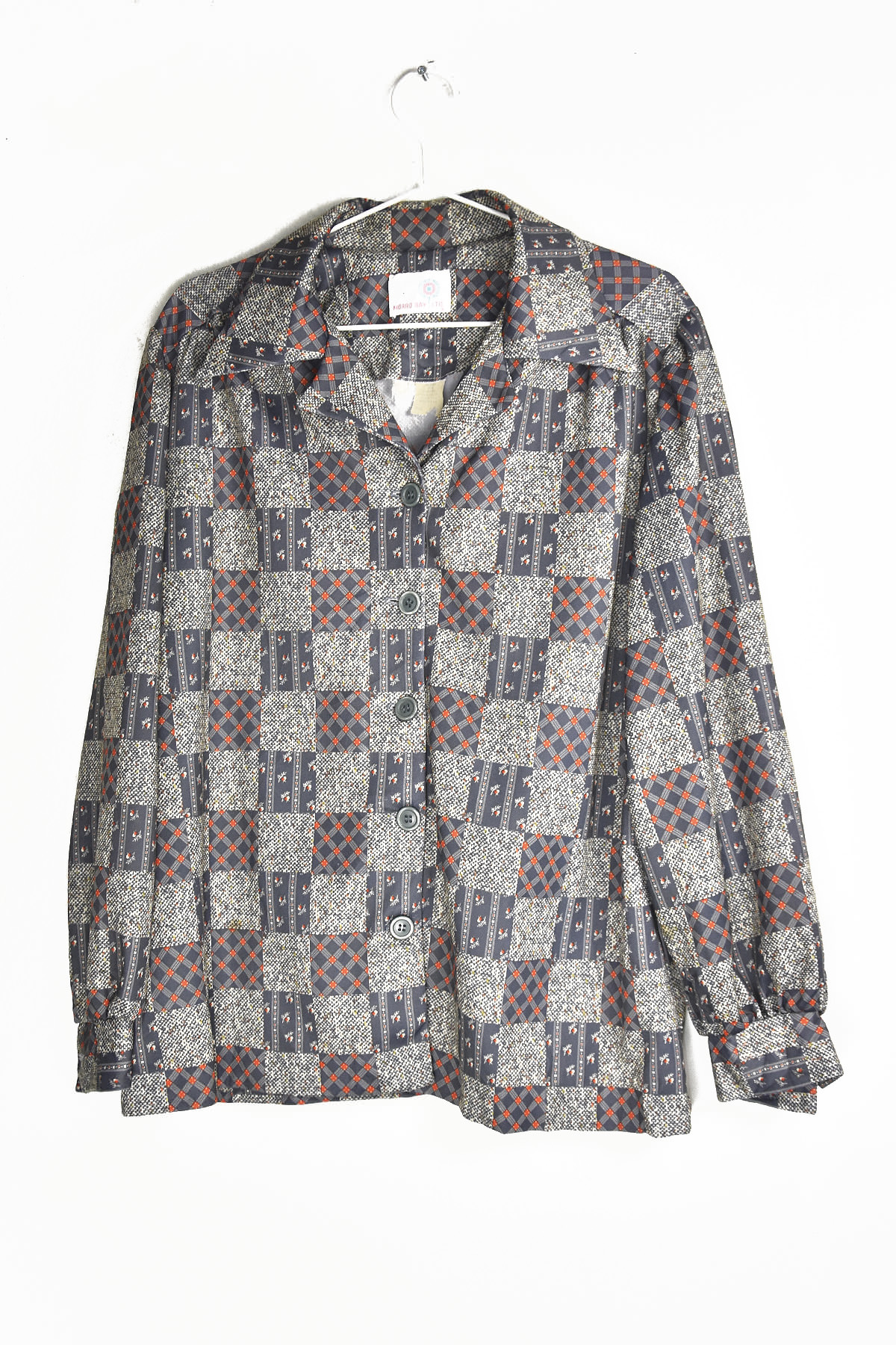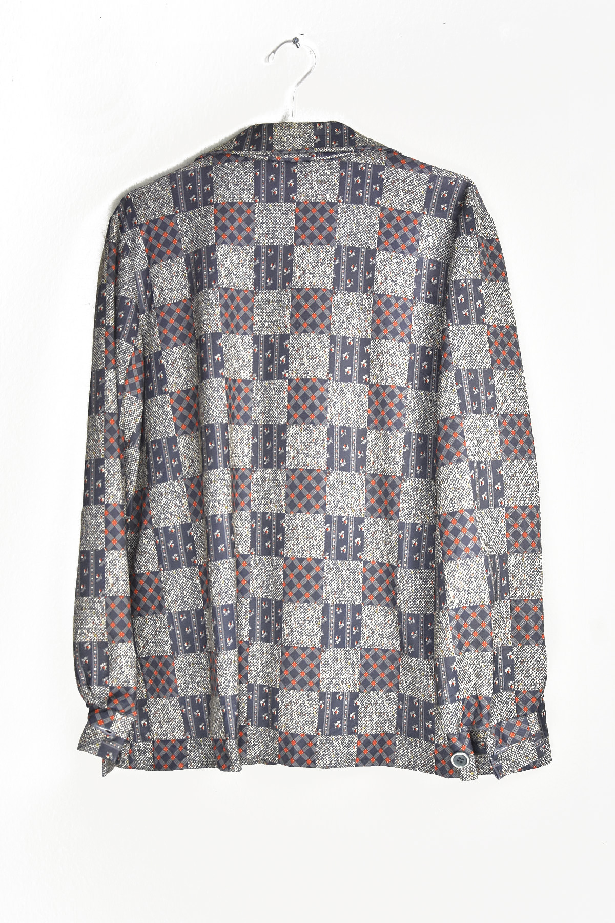 Embrace the groovy vibes with this retro-chic 70’s blouse. Its eye-catching checkered pattern in grey and red exudes a timeless appeal. The lightweight fabric ensures comfort, while the flattering silhouette accentuates your curves. Perfect for adding a touch of vintage charm to any outfit, this blouse is a must-have for fashion-forward individuals seeking a unique and stylish statement piece.