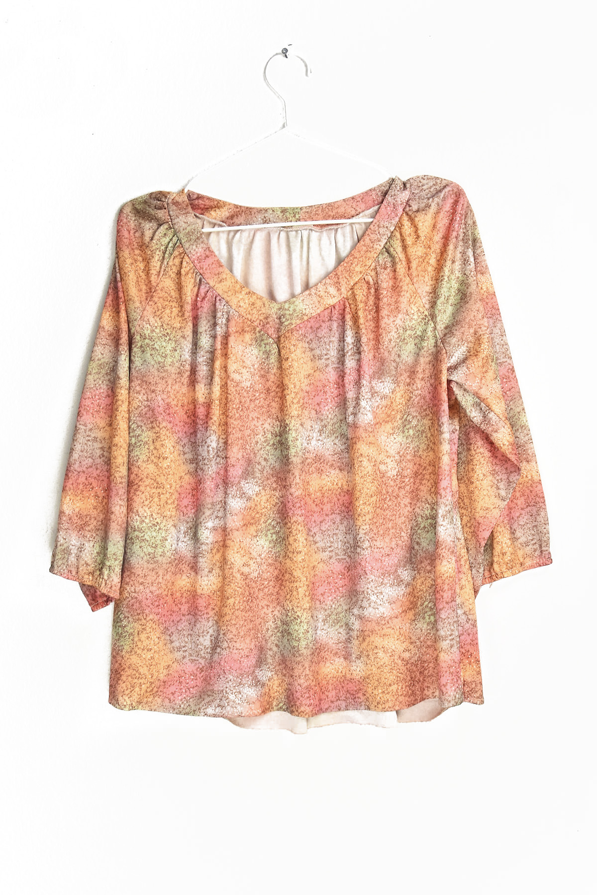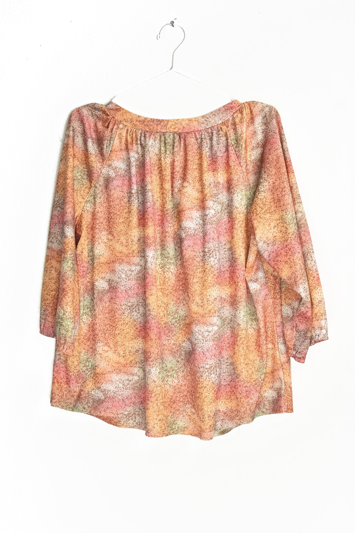 Embrace the groovy vibes with our vibrant 70’s blouse! Its eye-catching retro print transports you back to the era of peace and love. Crafted from soft, breathable fabric, this blouse ensures all-day comfort. Its unique design features a flattering silhouette that accentuates your curves. Stand out from the crowd with this statement piece that embodies the spirit of the 70s.