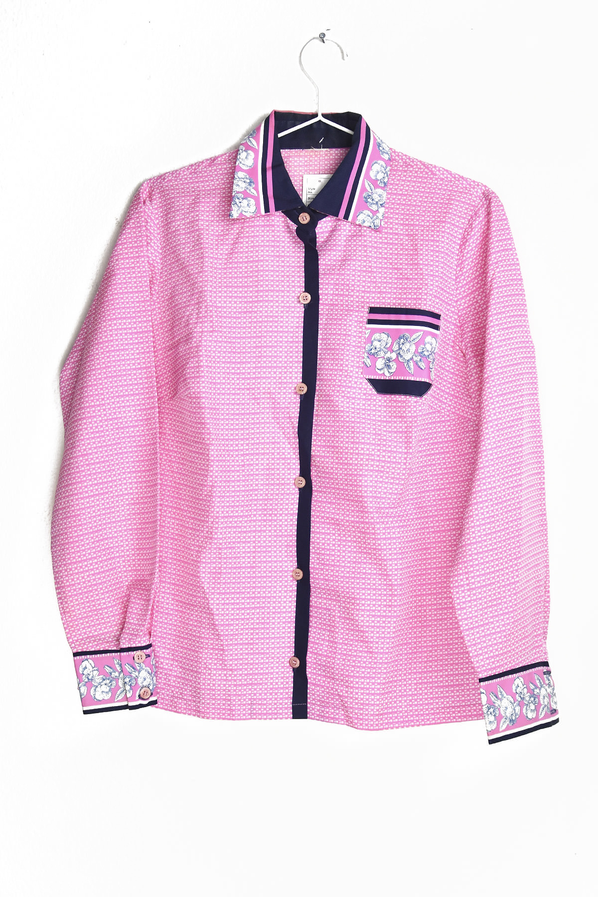 Step back in time with our captivating 70’s blouse! This retro masterpiece boasts a vibrant pink hue, evoking the groovy era. Its vintage design features intricate details that transport you to the heart of the 70s. Experience the allure of a bygone era while embracing the modern comfort and style of this timeless piece.
