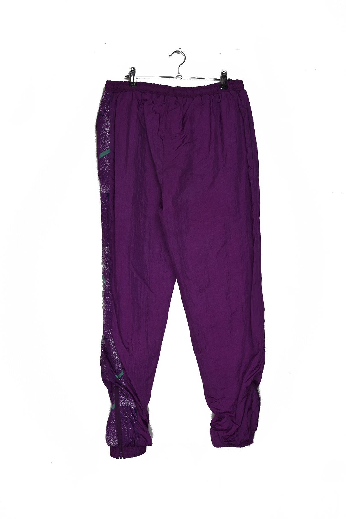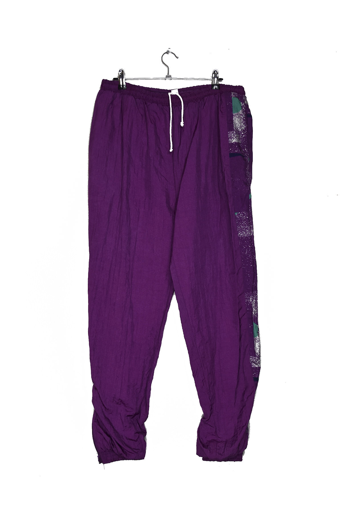 Step back into the vibrant 80s with these distressed purple track pants. Crafted from a soft and durable fabric, they feature a relaxed fit for ultimate comfort. The eye-catching distressed texture adds a touch of vintage charm, while the elastic waistband and drawstring ensure a secure and adjustable fit. Perfect for casual wear or a retro-inspired workout, these pants will turn heads wherever you go.