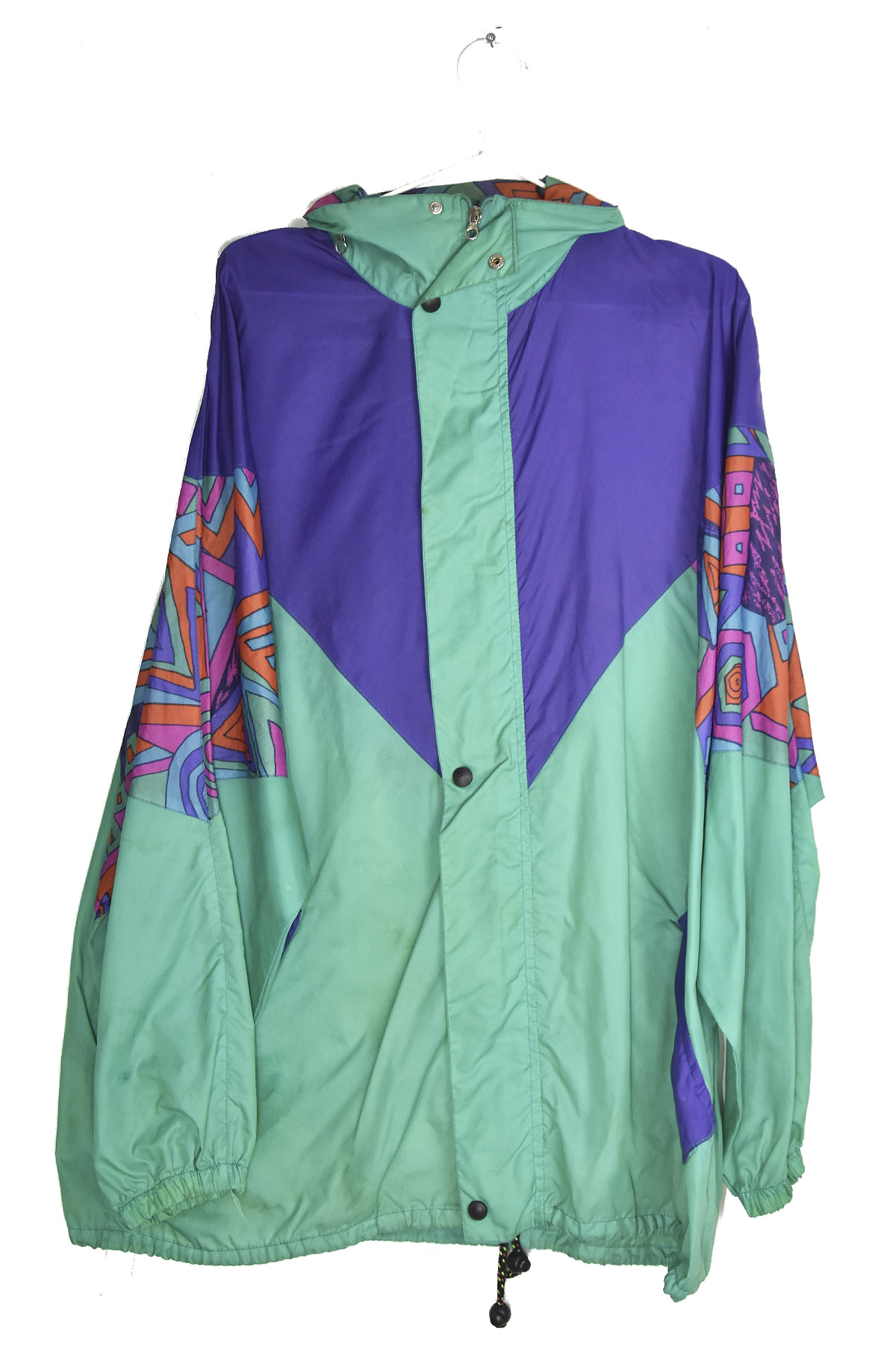 Relive the vibrant 80s with this eye-catching retro rain jacket. Its bold green and blue color scheme evokes nostalgia, while its waterproof and windproof construction ensures protection from the elements. The lightweight and breathable fabric provides comfort, and the adjustable hood and cuffs offer a customizable fit. Stand out from the crowd with this unique and stylish jacket that combines retro flair with modern functionality.