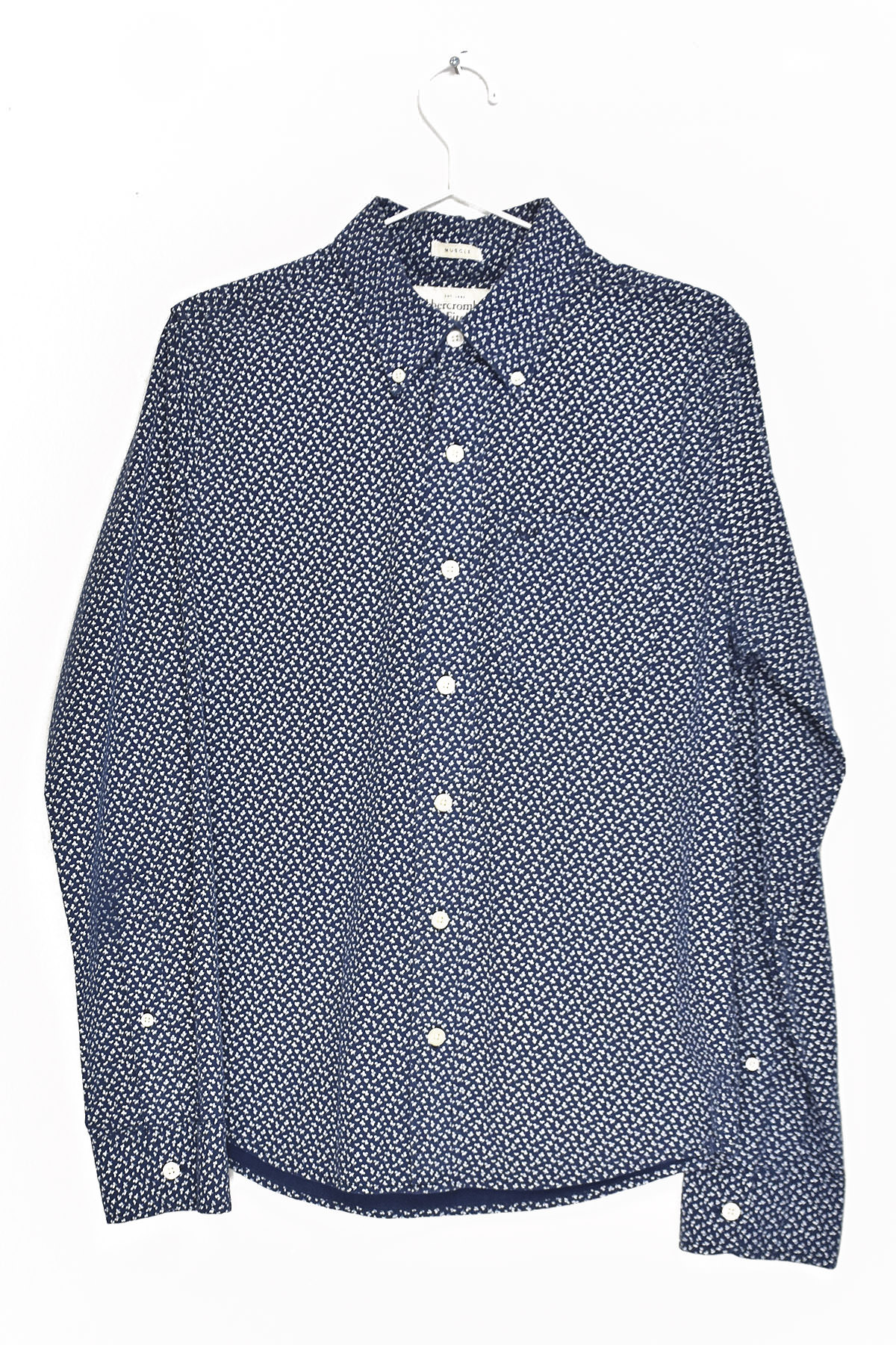 Abercrombie & Fitch’s blue mini print shirt in size small offers a stylish and comfortable addition to any wardrobe. Crafted from soft, breathable fabric, it features a vibrant blue hue adorned with an eye-catching mini print, adding a touch of sophistication to your casual attire. The shirt’s tailored fit ensures a flattering silhouette, while its button-down closure provides versatility for various occasions.
