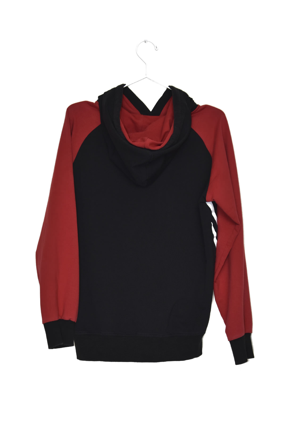 Elevate your athleisure style with the Adidas Black and Maroon Hooded Sweatshirt. Crafted from premium cotton, this sweatshirt offers exceptional comfort and breathability. Its bold color combination and iconic Adidas logo make a statement, while the adjustable hood and ribbed cuffs provide warmth and a secure fit. Perfect for casual wear or post-workout relaxation, this sweatshirt combines style and functionality seamlessly.