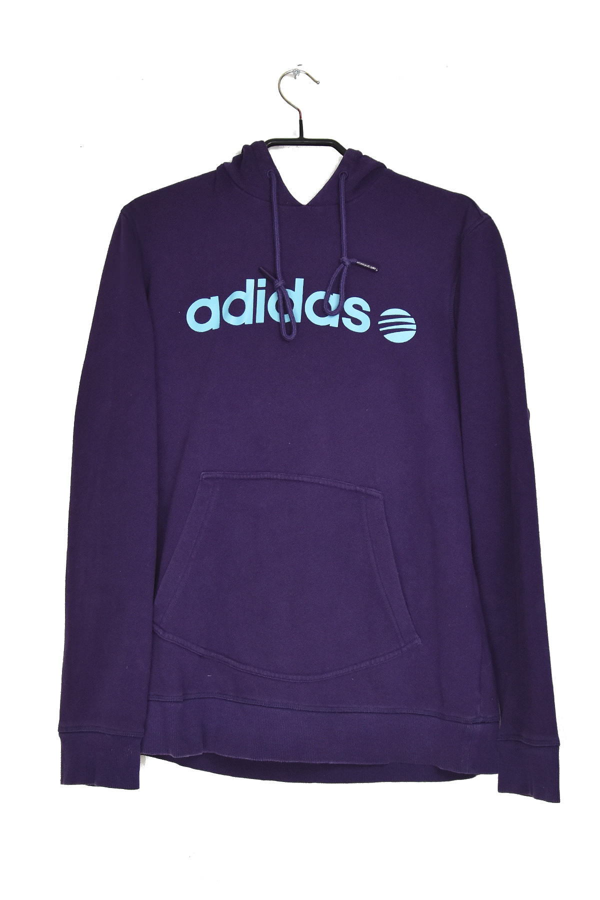 Sporty and stylish, the Adidas blue logo purple hooded sweatshirt in size large offers a comfortable and eye-catching addition to your wardrobe. Its soft cotton blend fabric ensures warmth and breathability, while the bold Adidas logo in blue stands out against the vibrant purple hue. The adjustable hood provides extra coverage and protection from the elements, making it perfect for casual wear or outdoor activities.