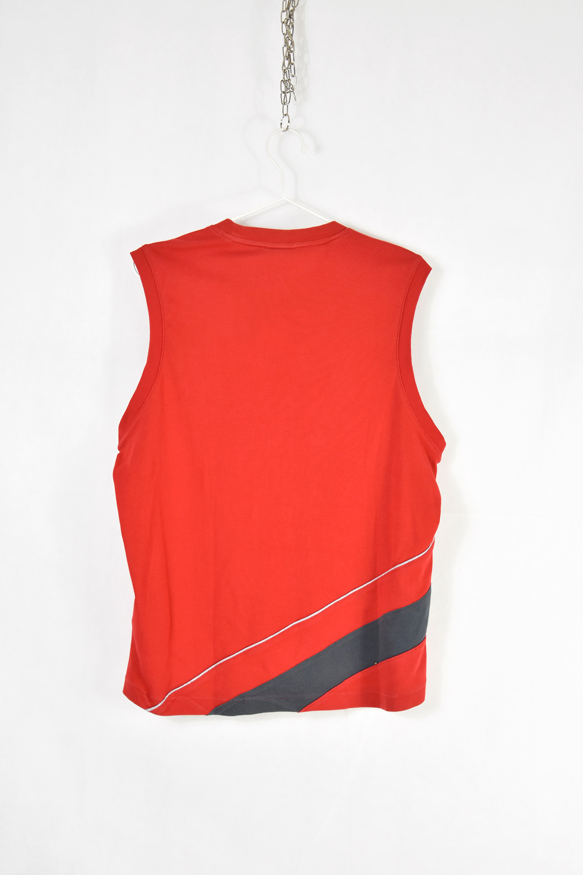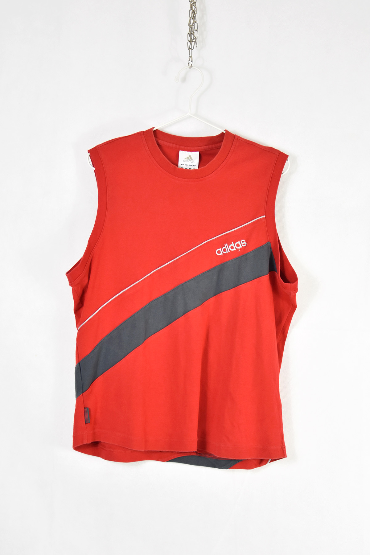 Elevate your workout wardrobe with the Adidas Red and Grey Tank Top in size L. Crafted from breathable and moisture-wicking fabric, this tank top keeps you cool and dry during intense training sessions. Its bold red and grey color combination adds a touch of style to your gym attire. The loose fit allows for unrestricted movement, while the ribbed neckline and armholes provide a comfortable and secure fit. Whether you’re hitting the gym or running errands, this Adidas tank top is a versatile and stylish choice.