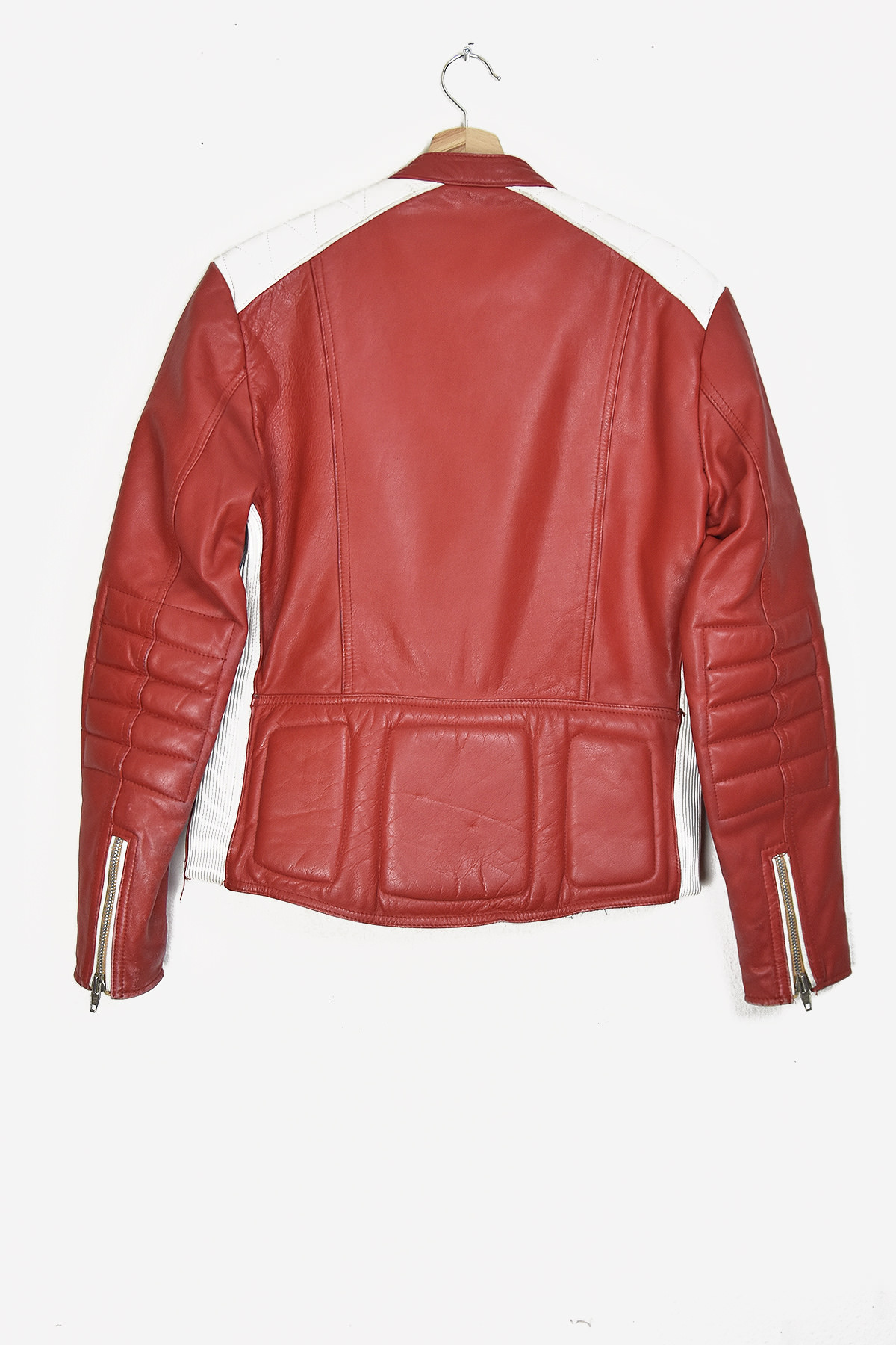 Introducing the Adidas red and white leather biker jacket, a statement piece that combines style and functionality. Crafted from premium leather, this jacket offers exceptional durability and a timeless aesthetic. Its bold red and white color scheme exudes confidence, while the biker-inspired design adds a touch of edge. Key features include: