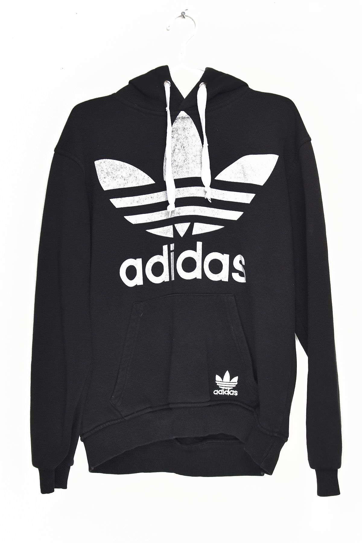 Elevate your athleisure style with the Adidas White Logo Black Hooded Sweatshirt. Crafted from premium cotton, this sweatshirt offers exceptional comfort and breathability. Its bold white Adidas logo on the chest adds a touch of iconic style, while the adjustable hood provides warmth and protection from the elements. The ribbed cuffs and hem ensure a secure and snug fit, making this sweatshirt perfect for both casual wear and active pursuits.