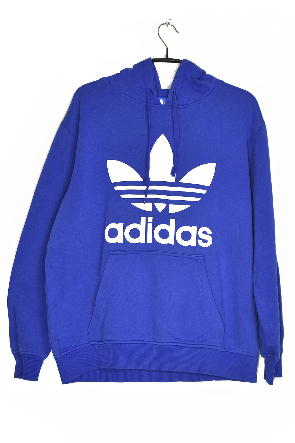 Sporty and stylish, the Adidas white logo blue hooded sweatshirt is crafted from soft and durable cotton for all-day comfort. Its bold blue Adidas logo on the chest adds a touch of athletic flair, while the adjustable hood and ribbed cuffs provide warmth and a secure fit. Perfect for casual wear or post-workout relaxation, this sweatshirt combines functionality and fashion effortlessly.