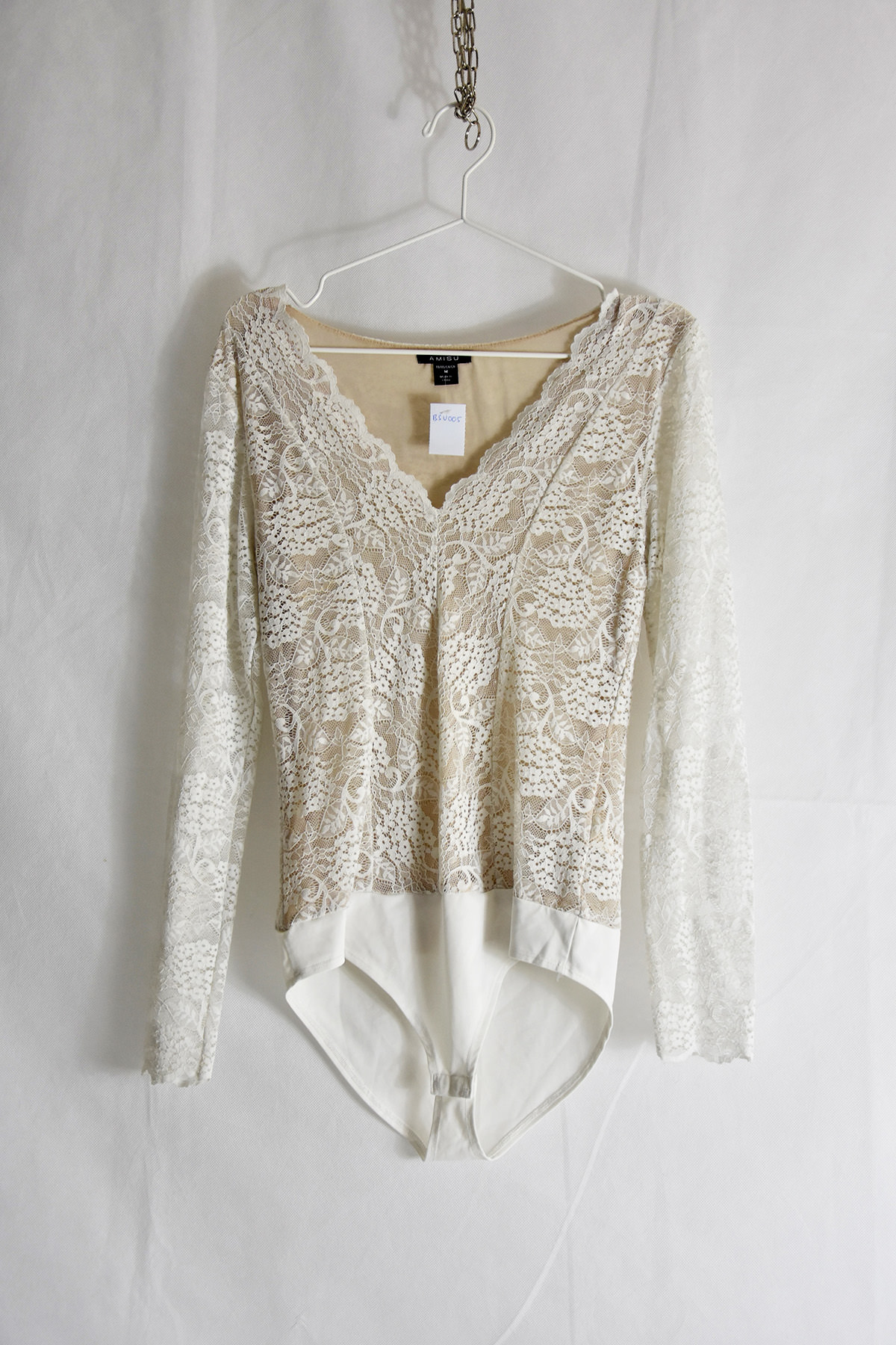 Amisu’s cream-colored bodysuit in net fabric offers a captivating blend of elegance and comfort. Crafted from delicate net fabric, it drapes effortlessly over the body, creating a flattering silhouette. The M size ensures a perfect fit, while the cream color exudes a timeless sophistication. Its unique design and breathable fabric make it an ideal choice for special occasions or everyday wear.