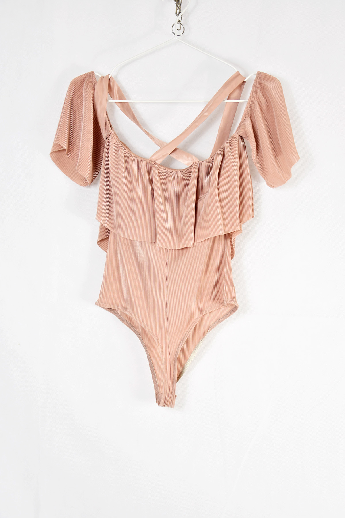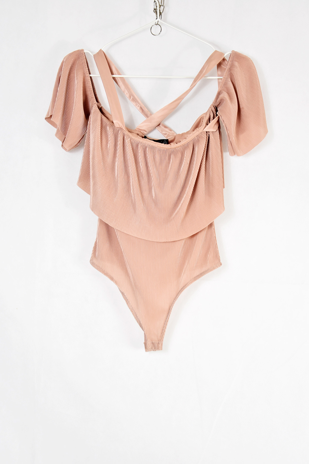 Bershka’s salmon-colored bodysuit in size S is a stylish and versatile piece that flatters any figure. Made from soft and stretchy fabric, it provides a comfortable and flattering fit. The vibrant salmon color adds a pop of color to any outfit, while the scoop neckline and snap button closure ensure a secure and comfortable fit. Perfect for layering or wearing on its own, this bodysuit is a must-have for any fashion-forward wardrobe.