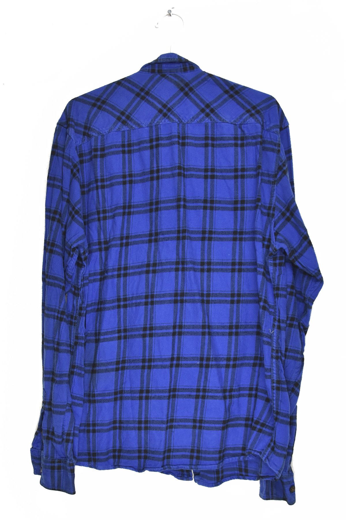Indulge in the timeless appeal of our Blue and Black Checkered Flannel Shirt in XL. Crafted from premium flannel, this shirt exudes warmth and comfort. Its classic checkered pattern adds a touch of rugged charm, while the oversized fit ensures a relaxed and effortless style. Perfect for layering or wearing on its own, this versatile piece is a wardrobe staple that will elevate your casual look.