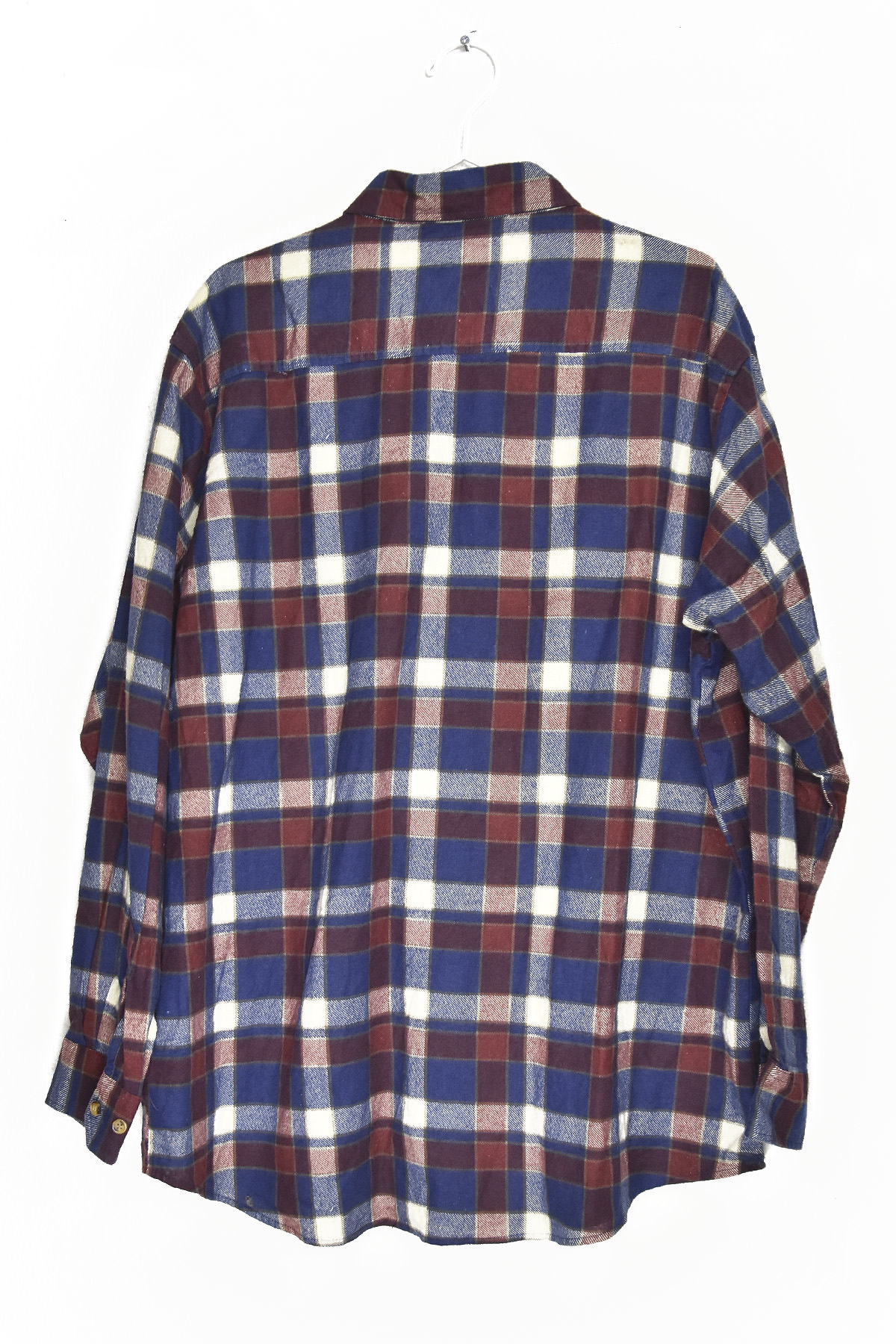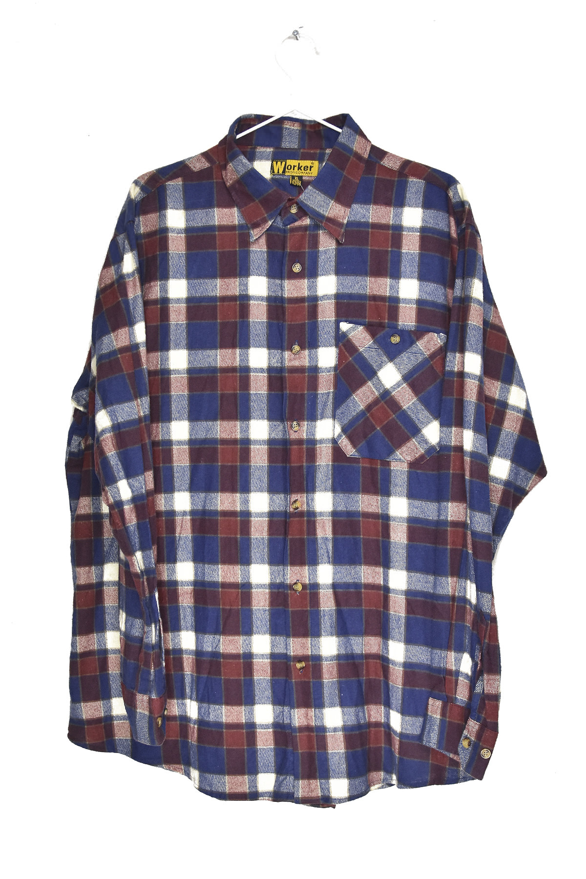 Indulge in the timeless appeal of our Blue and Red Checkered Flannel Shirt in XL. Crafted from premium flannel, this shirt exudes warmth and comfort. Its classic checkered pattern adds a touch of rugged charm, while the oversized fit ensures a relaxed and effortless style. Perfect for layering or wearing on its own, this versatile piece is a wardrobe staple that will elevate your casual look.