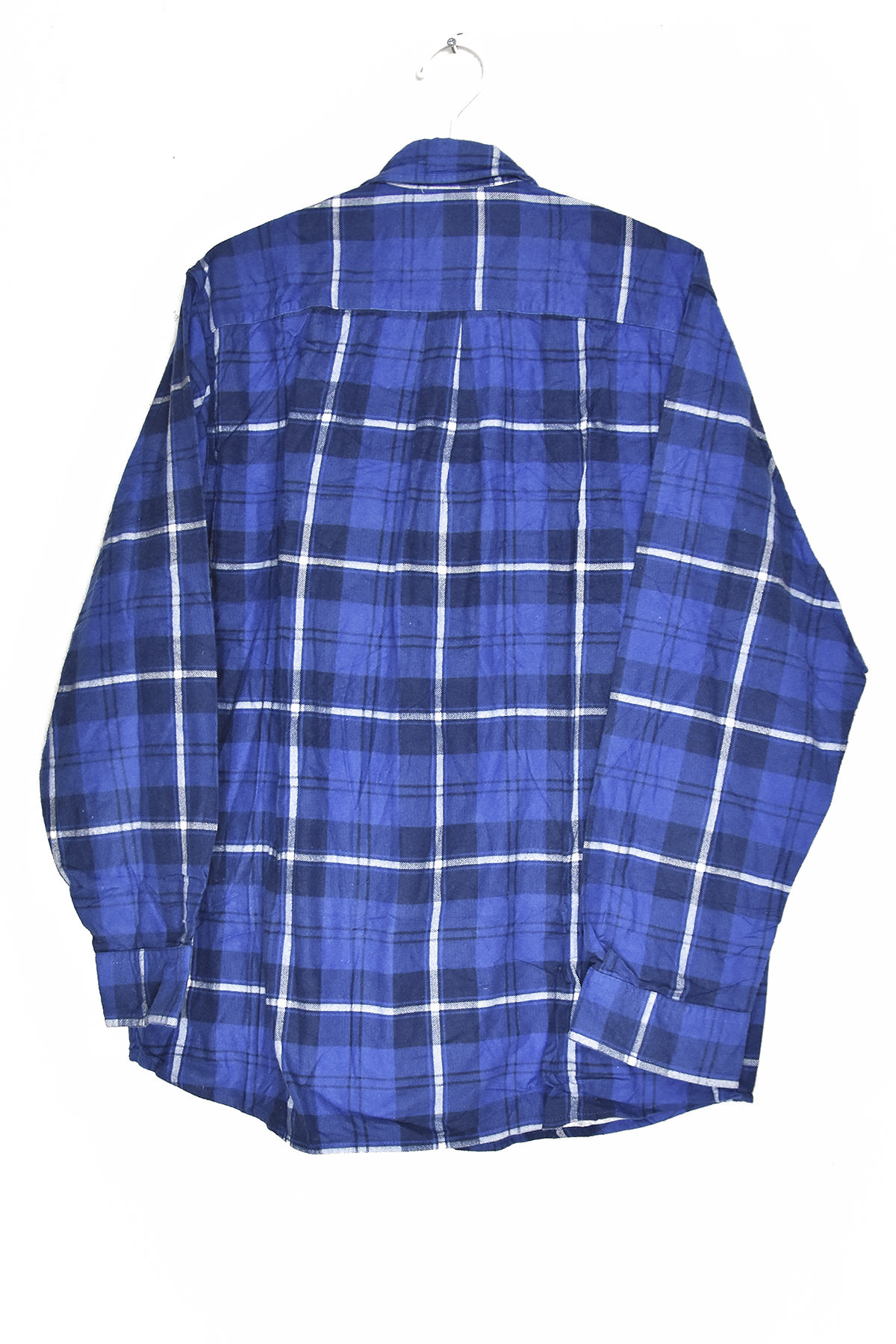 Classic blue and white checkered flannel shirt in size 39/40. Crafted from soft, warm flannel, this shirt offers exceptional comfort and durability. Its timeless design and versatile style make it a wardrobe staple, perfect for layering or wearing on its own.