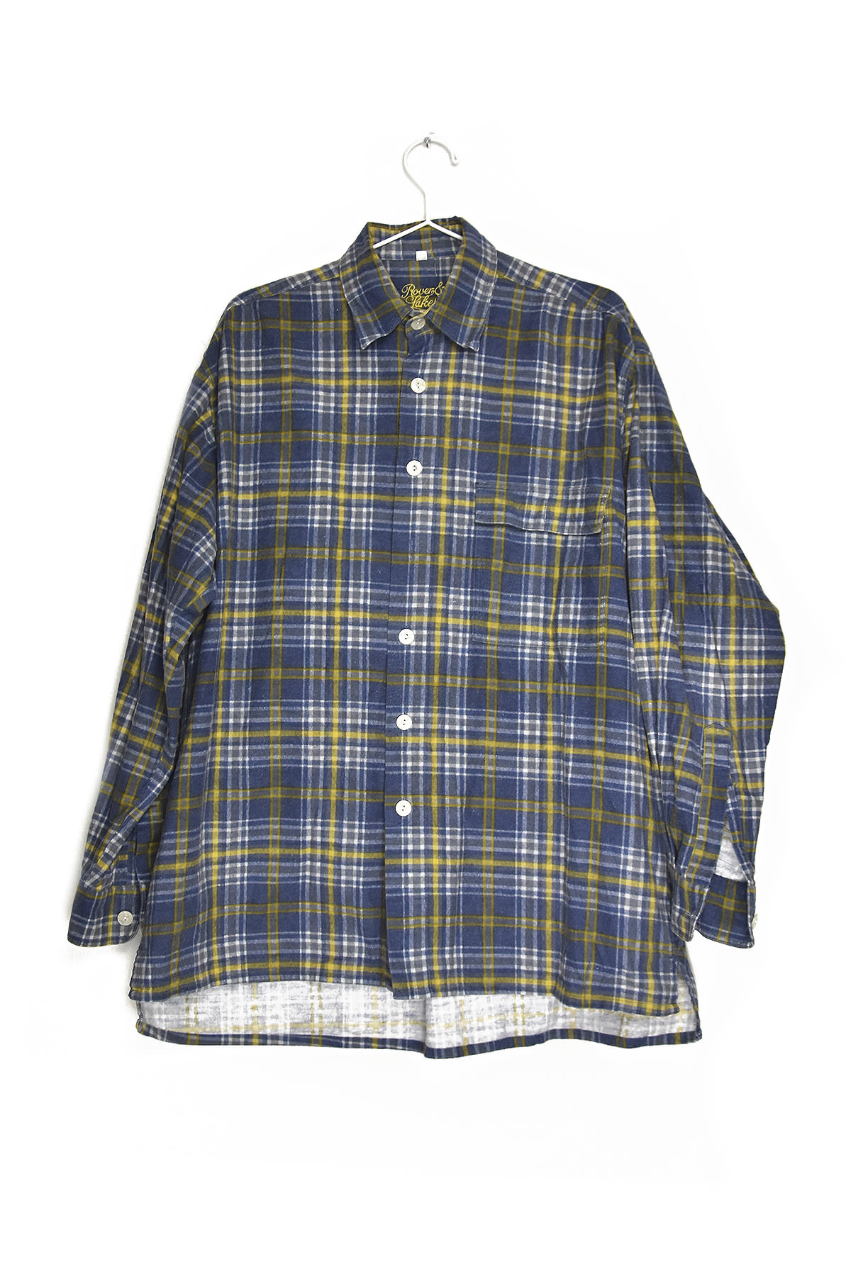 Classic blue and yellow checkered flannel shirt in size medium. Crafted from soft, breathable cotton, this shirt offers warmth and comfort. Its timeless design and versatile color scheme make it a wardrobe staple, perfect for layering or wearing on its own.