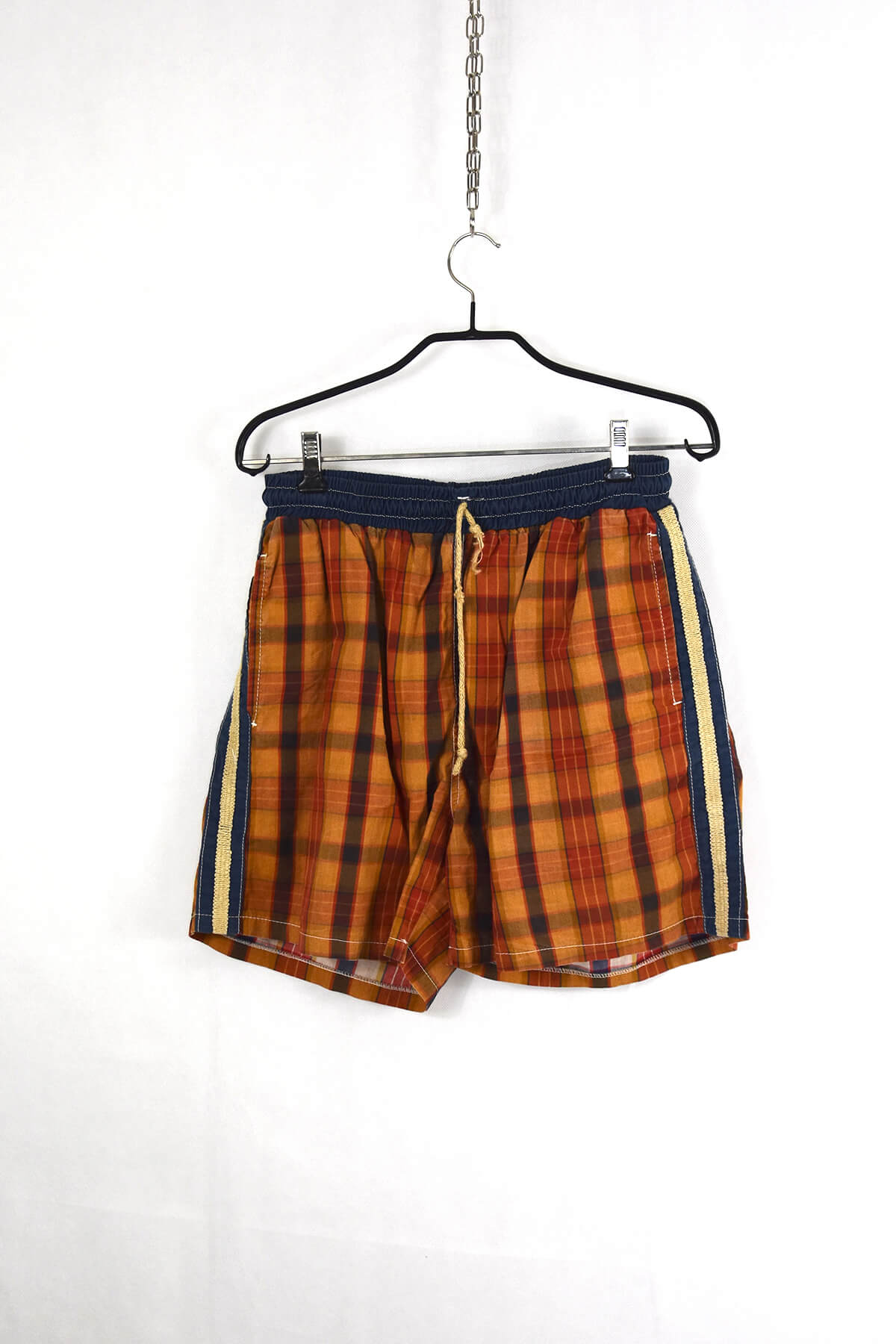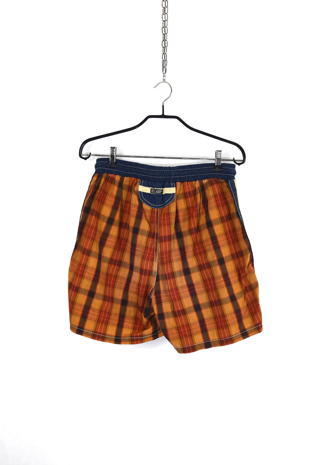 Brown and blue checkered print shorts