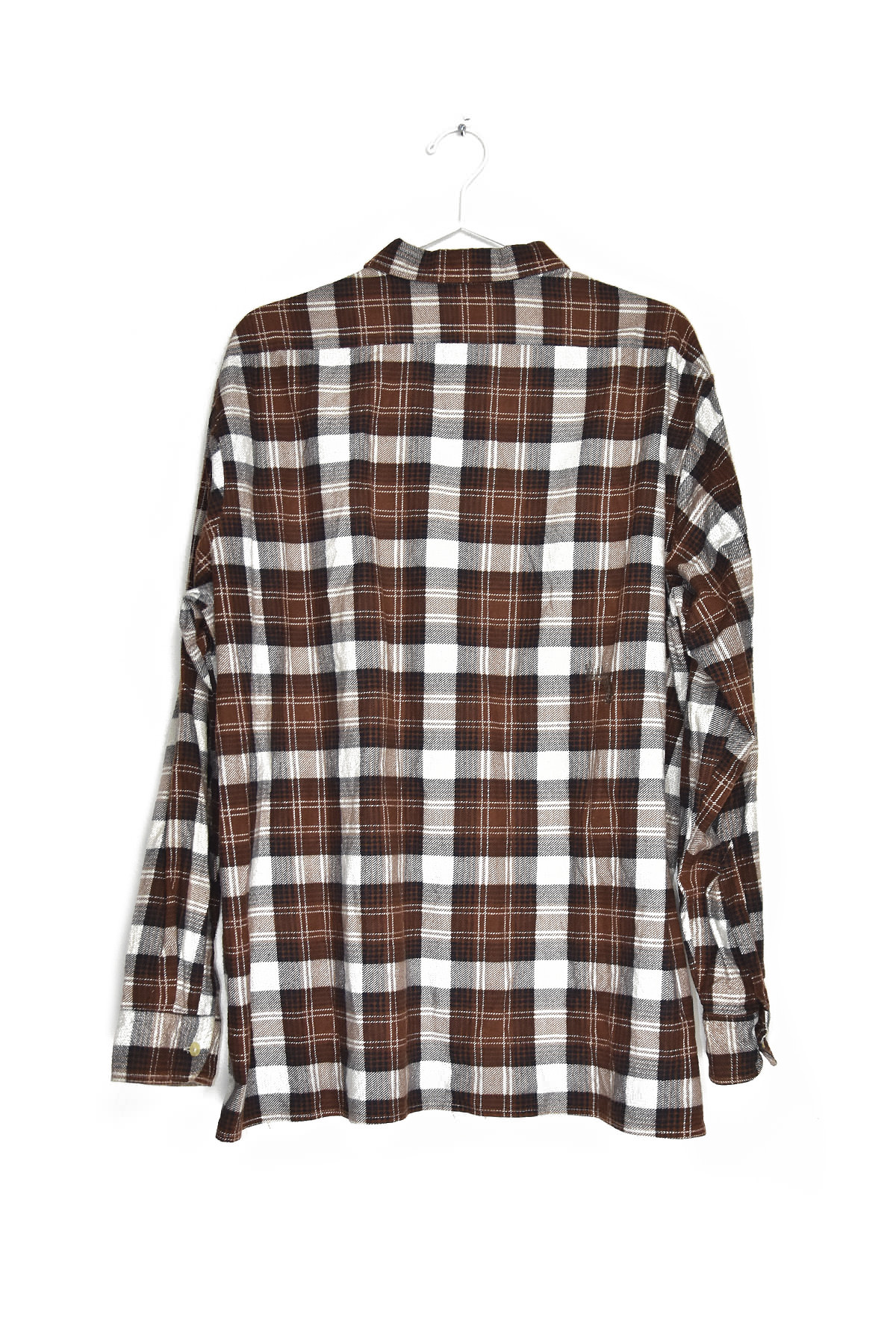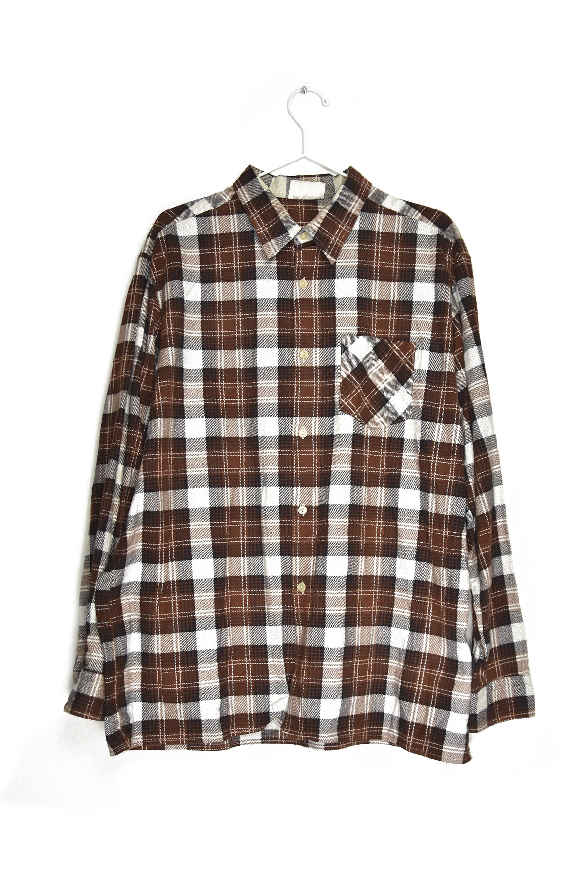 Indulge in timeless style with our Brown and White Checkered Flannel Shirt. Crafted from premium flannel, this shirt offers exceptional warmth and comfort. Its classic checkered pattern exudes a rugged yet refined aesthetic, making it perfect for both casual and semi-formal occasions. The button-down front and adjustable cuffs provide a customizable fit, ensuring a flattering silhouette. Elevate your wardrobe with this versatile and stylish flannel shirt, a must-have for any discerning individual.