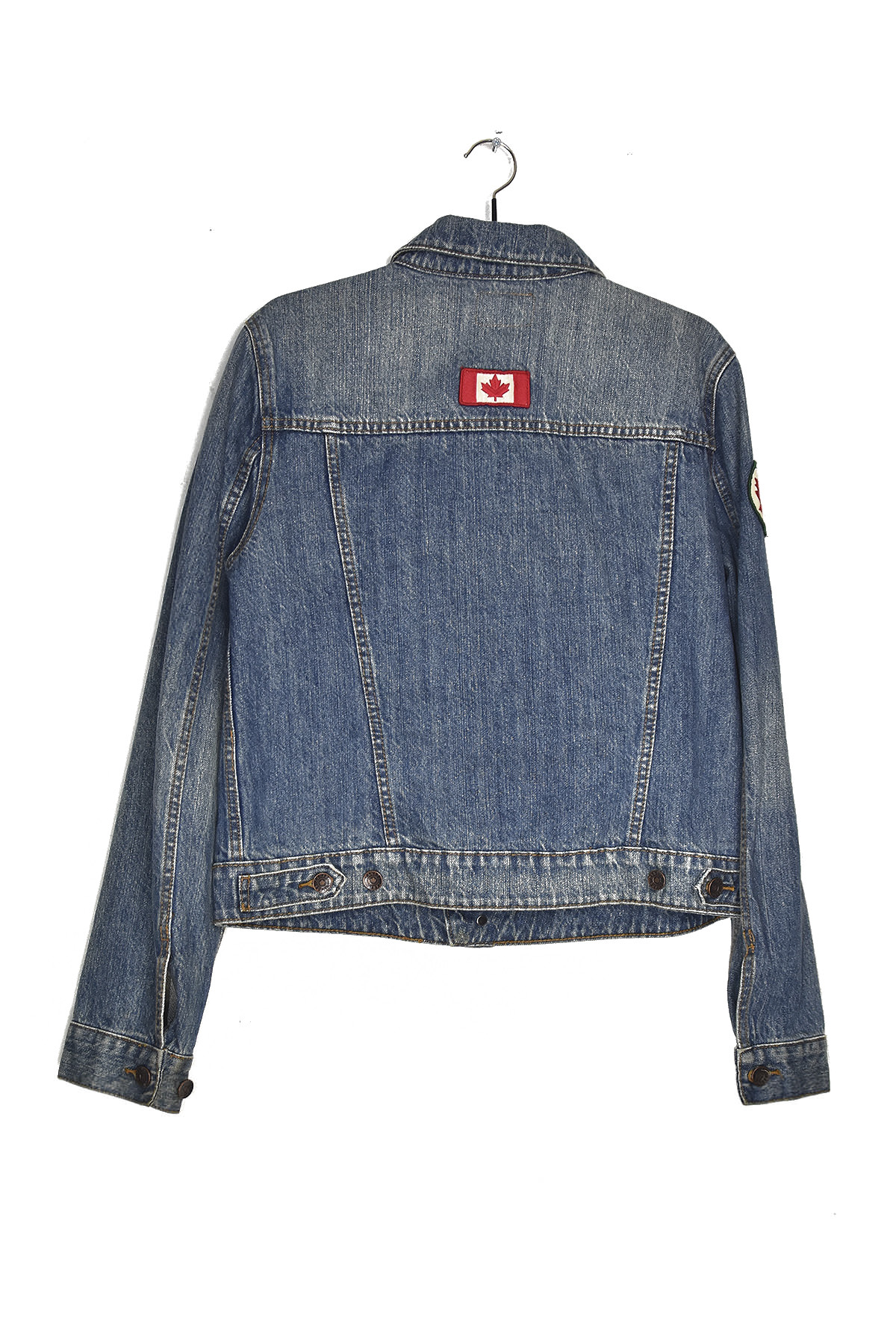 This stylish denim jacket features a unique collection of Canadian-themed patches, showcasing the country’s iconic symbols and landmarks. Its durable construction and comfortable fit make it perfect for everyday wear, while the eye-catching patches add a touch of patriotism and individuality.