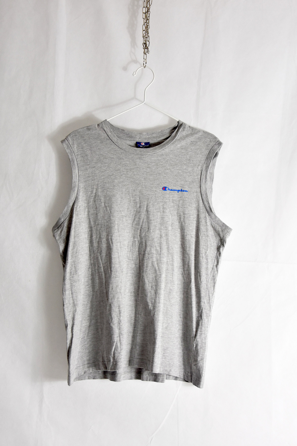 Champion grey tank top – M: Elevate your casual wardrobe with this versatile tank top. Crafted from soft and breathable cotton, it offers exceptional comfort and durability. Its classic grey hue complements any outfit, while the Champion logo adds a touch of athletic style. Perfect for layering or wearing on its own, this tank top is a must-have for any active lifestyle.