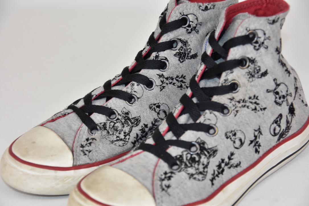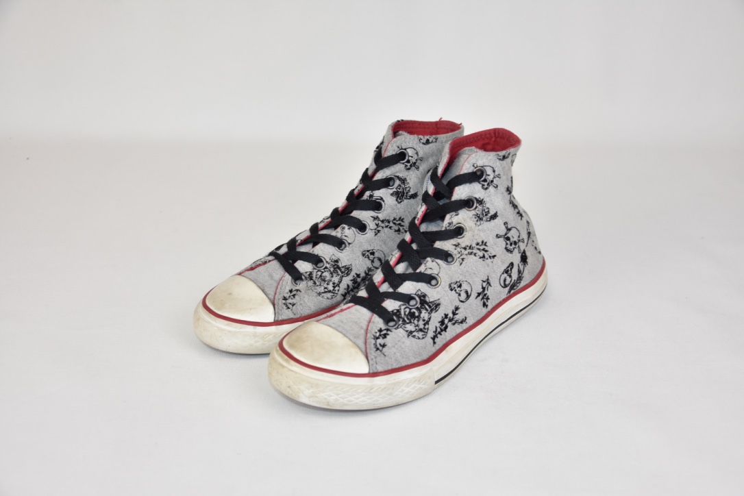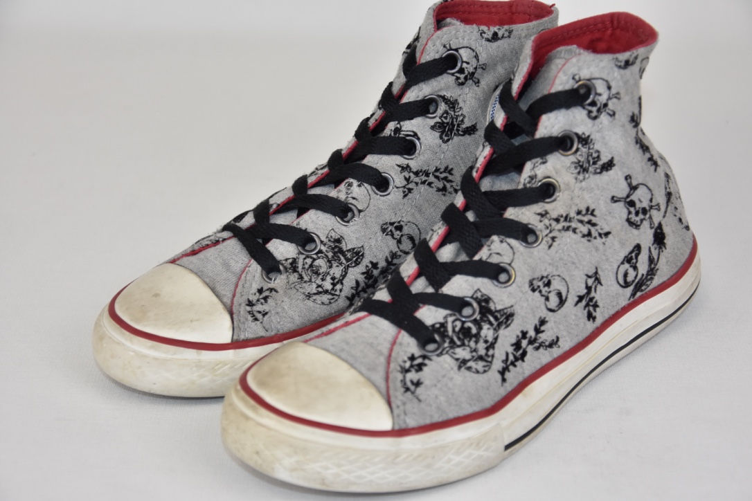 Converse all stars grey and red skulls high shoes