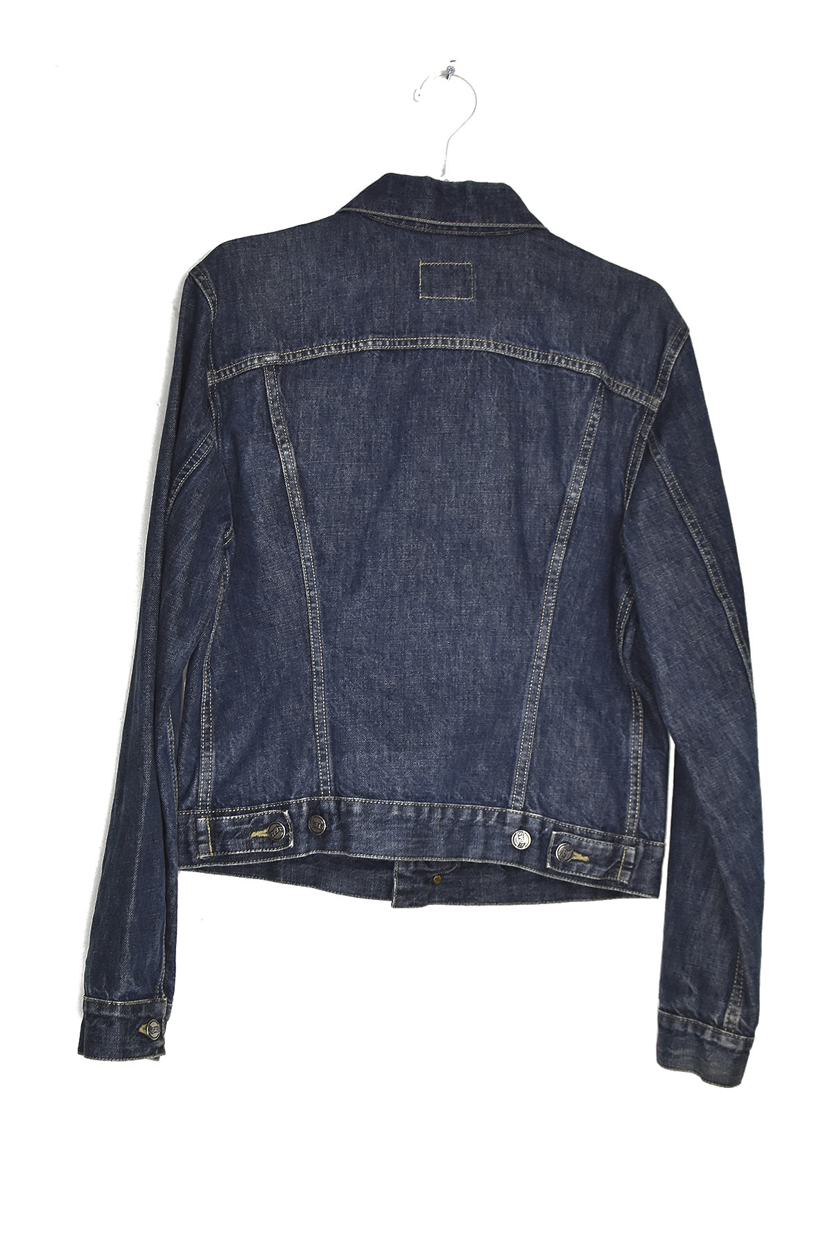 Indulge in timeless style with our dark blue denim jacket in size M. Crafted from premium denim, this jacket exudes durability and a classic aesthetic. Its tailored fit accentuates your silhouette, while the versatile dark blue hue complements any outfit. Featuring multiple pockets for ample storage, this jacket combines functionality with fashion. Elevate your wardrobe with this timeless piece that effortlessly transitions from casual to smart-casual occasions.