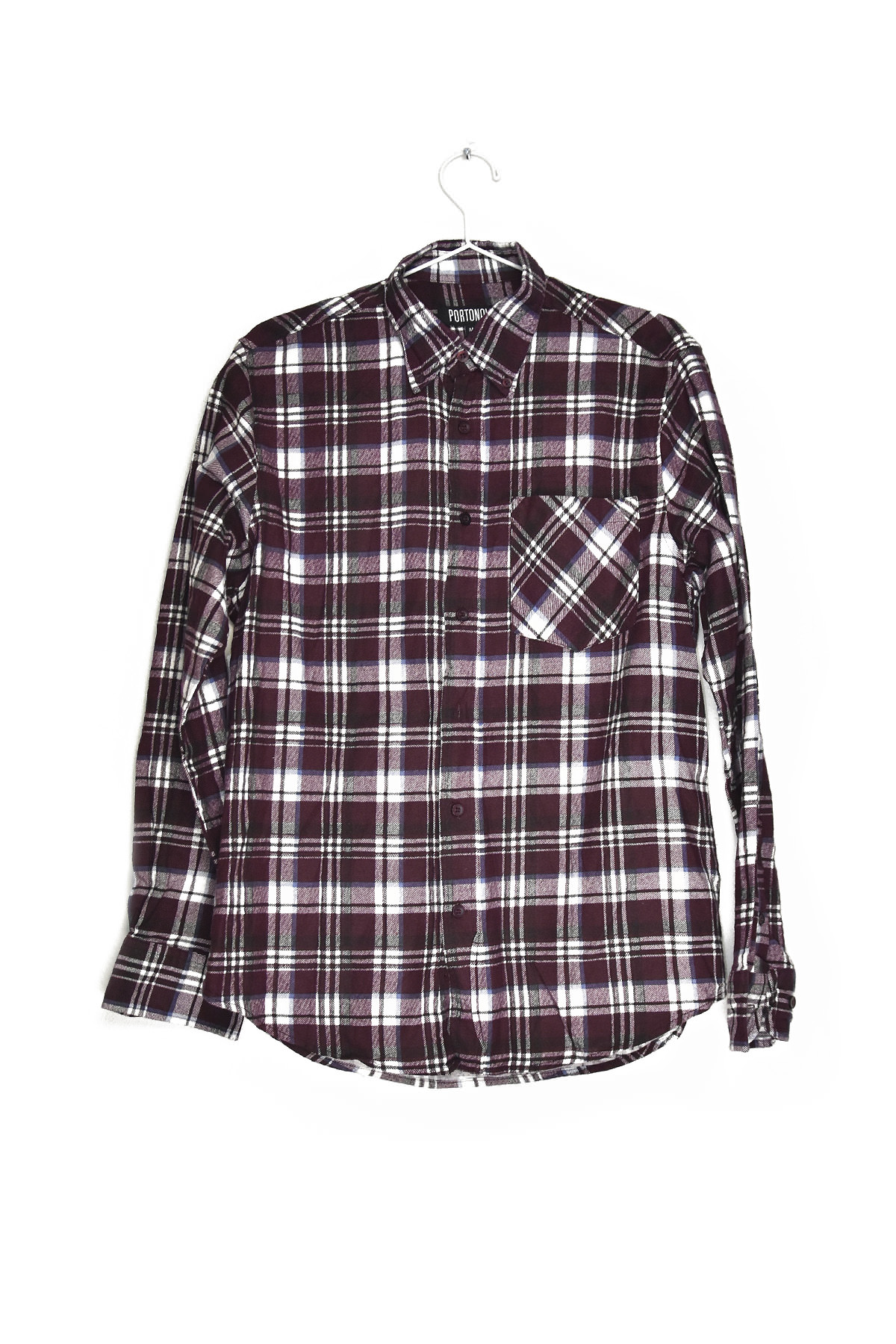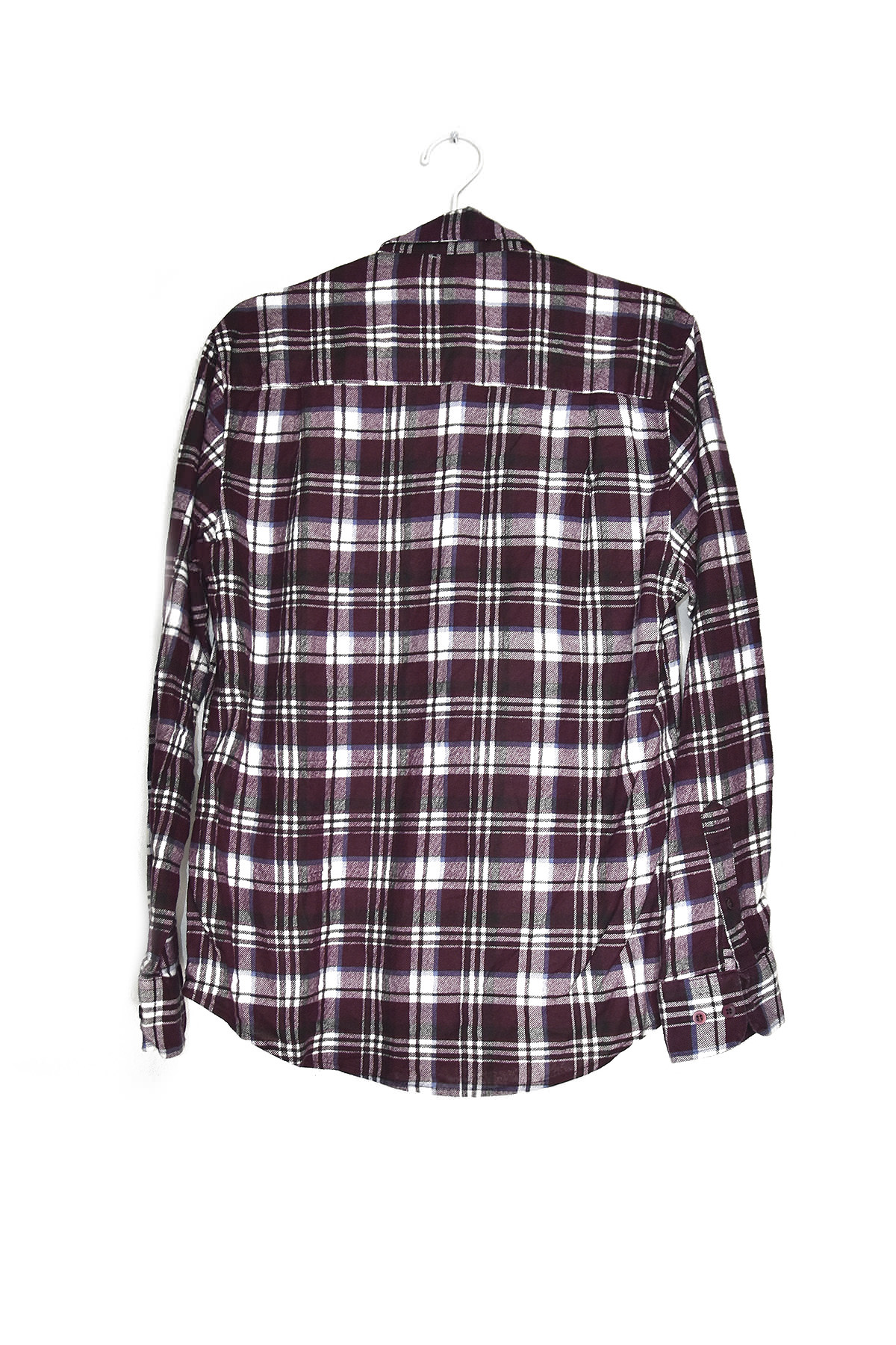 Classic dark red and white checkered flannel shirt in size large. Its soft, warm fabric provides comfort and style, perfect for casual wear or layering in colder weather. The timeless checkered pattern adds a touch of rugged charm, making it a versatile piece for any wardrobe.
