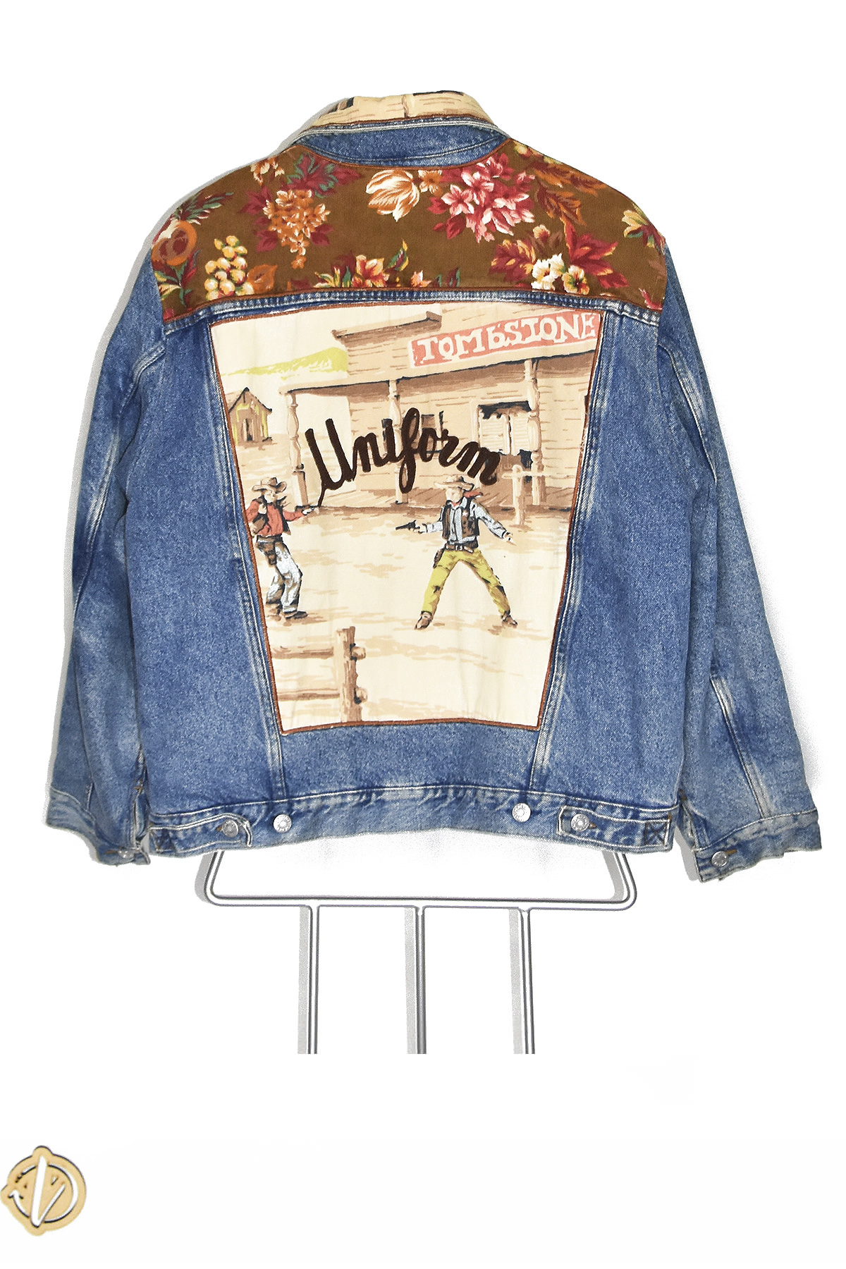 Introducing the Denim Uniform blue jacket, a stylish and functional piece that combines classic cowboy design with vibrant floral embroidery. Crafted from durable denim, this jacket features a timeless silhouette with a button-front closure, two chest pockets, and two side pockets for ample storage. The highlight of this jacket is its intricate floral embroidery, which adds a touch of femininity and uniqueness to the rugged denim exterior. Perfect for both casual and semi-formal occasions, this jacket is a versatile addition to any wardrobe.