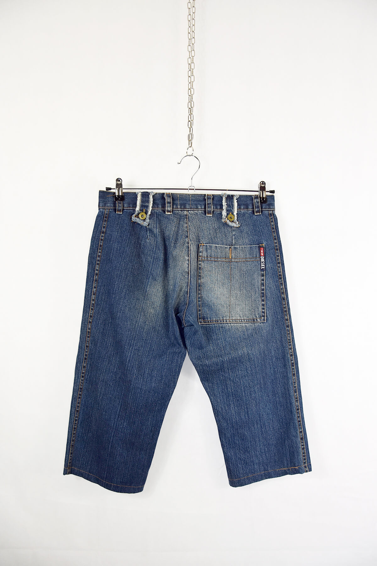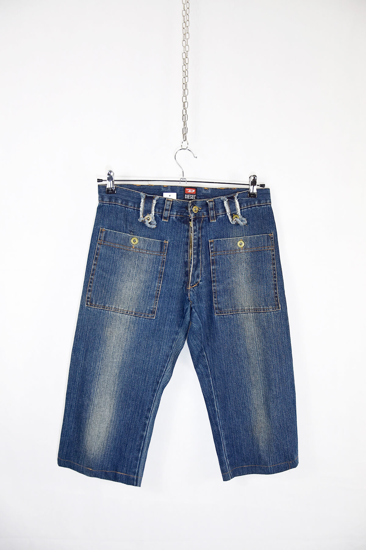 Indulge in the rugged charm of these Diesel long denim shorts, crafted from premium denim for exceptional durability and comfort. Their extended length offers a stylish and versatile silhouette, perfect for casual outings or laid-back weekends. The classic five-pocket design provides ample storage, while the signature Diesel branding adds a touch of urban edge. Experience the perfect blend of style and functionality with these must-have denim shorts.