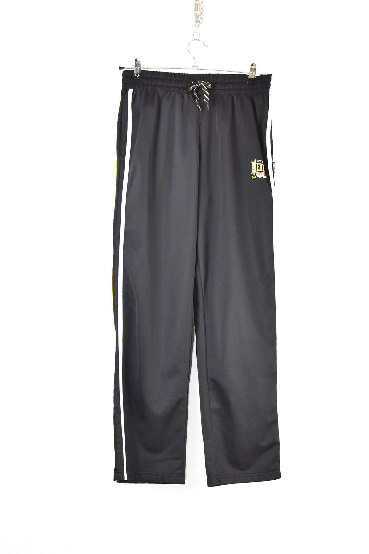 Everlast’s black sport track pants in size M are designed for comfort and performance during intense workouts. Made from durable and breathable fabric, they feature an elastic waistband with an adjustable drawstring for a secure fit. Side pockets provide convenient storage for essentials, while the iconic Everlast logo adds a touch of style. These pants are perfect for boxing, running, or any other athletic activity.