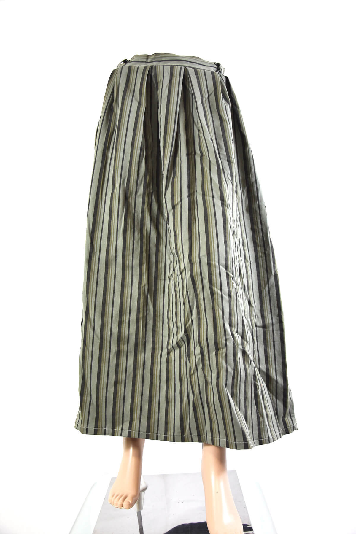 Green and black vertical lines print ladies skirt