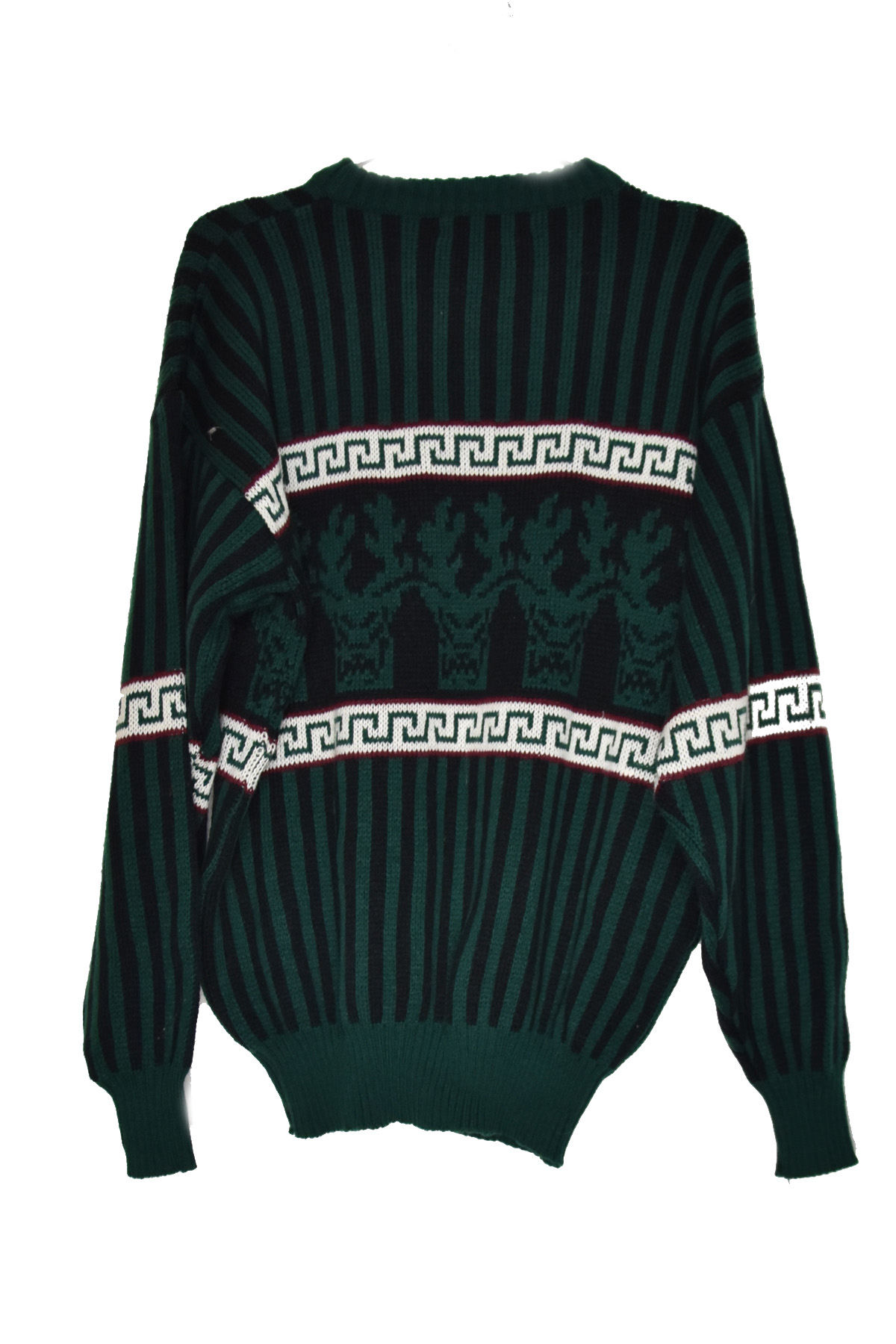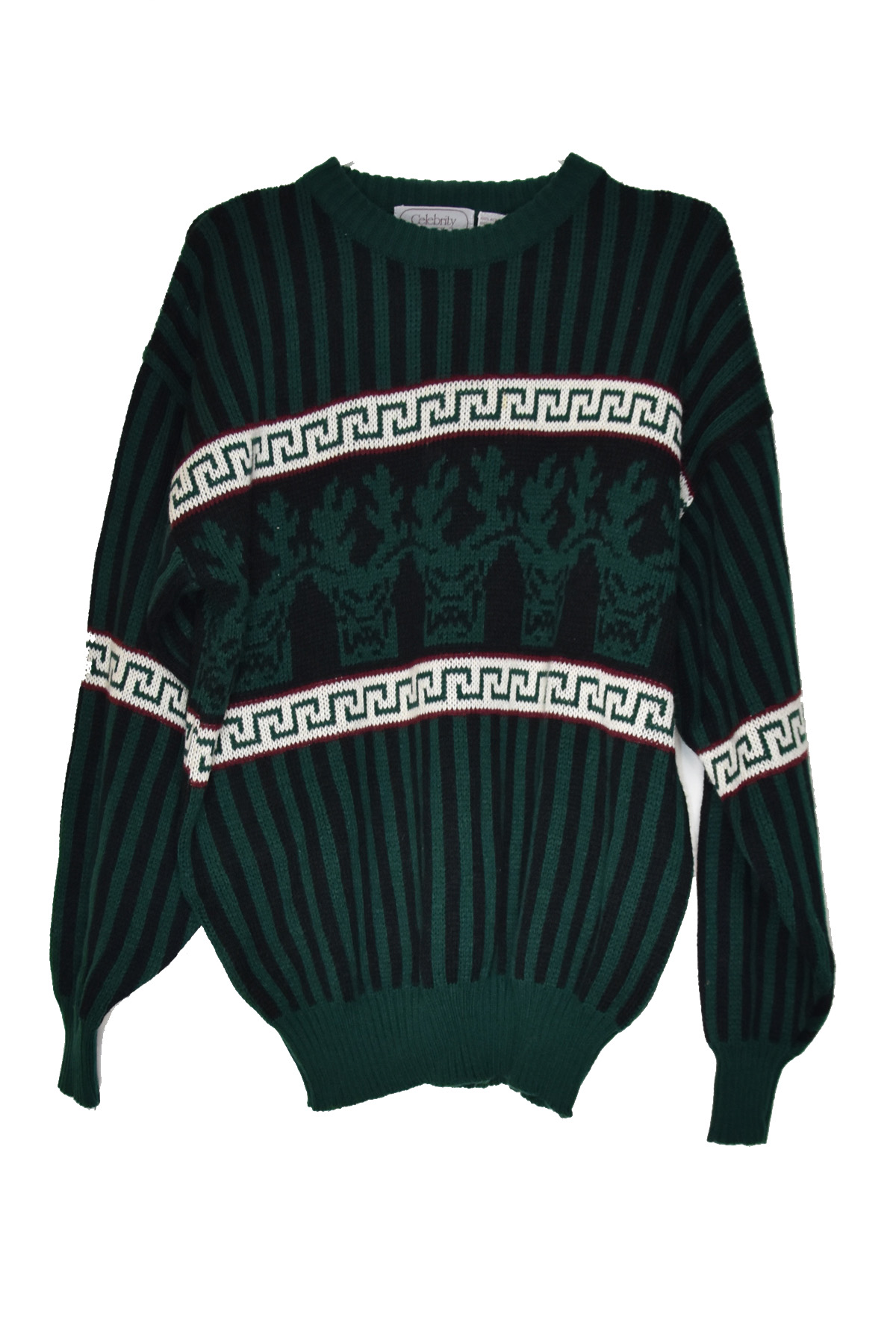 Be the first to review “Green with black lines and white abstract shapes knited pullover – M”
