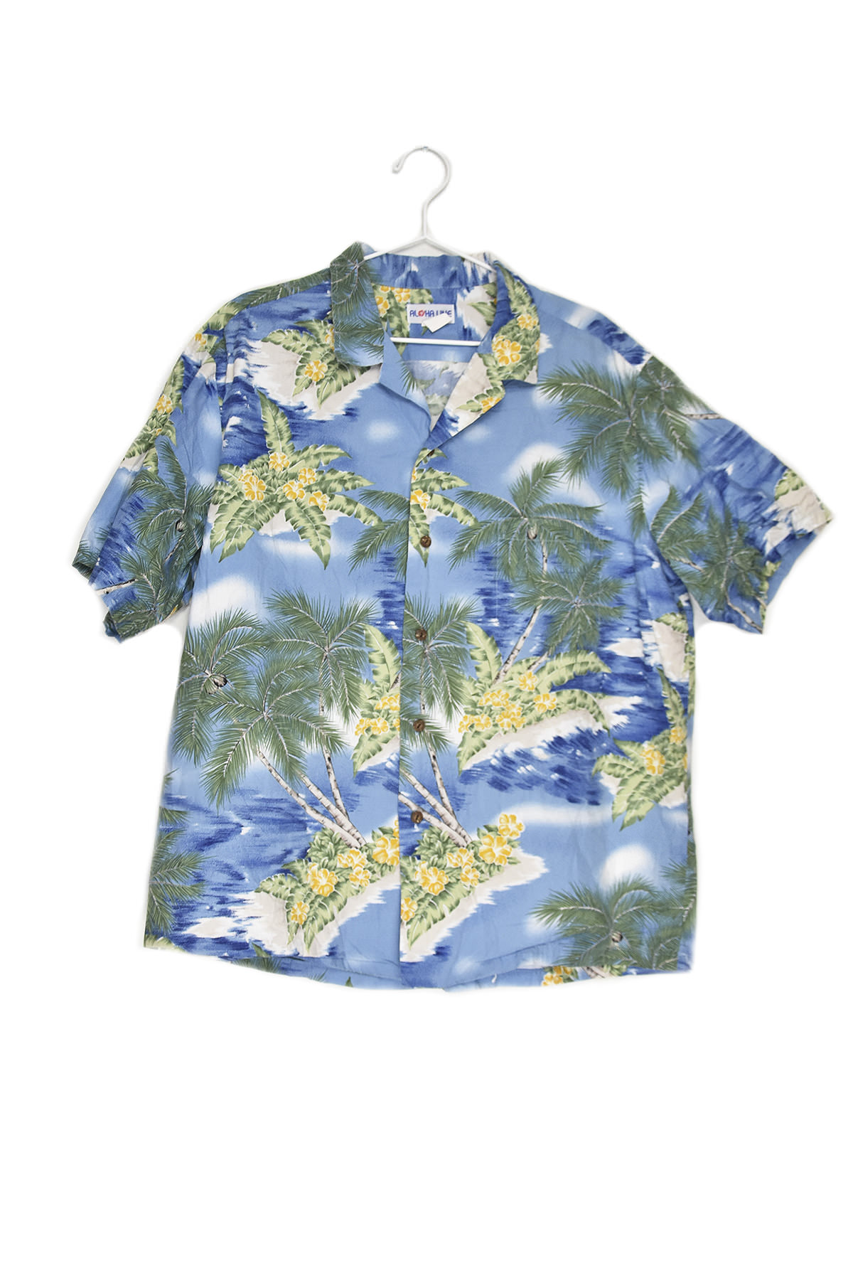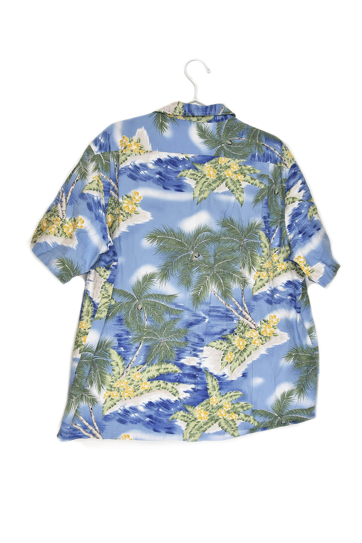 Escape to paradise with our Hawaii Beach Palms Blue Shirt in XL. Featuring a vibrant print of swaying palm trees against a serene blue backdrop, this shirt captures the essence of a tropical getaway. Made from lightweight, breathable fabric, it keeps you cool and comfortable all day long. Its relaxed fit and classic collar provide a stylish and effortless look, perfect for beach days, casual outings, or any occasion where you want to bring a touch of the islands with you.