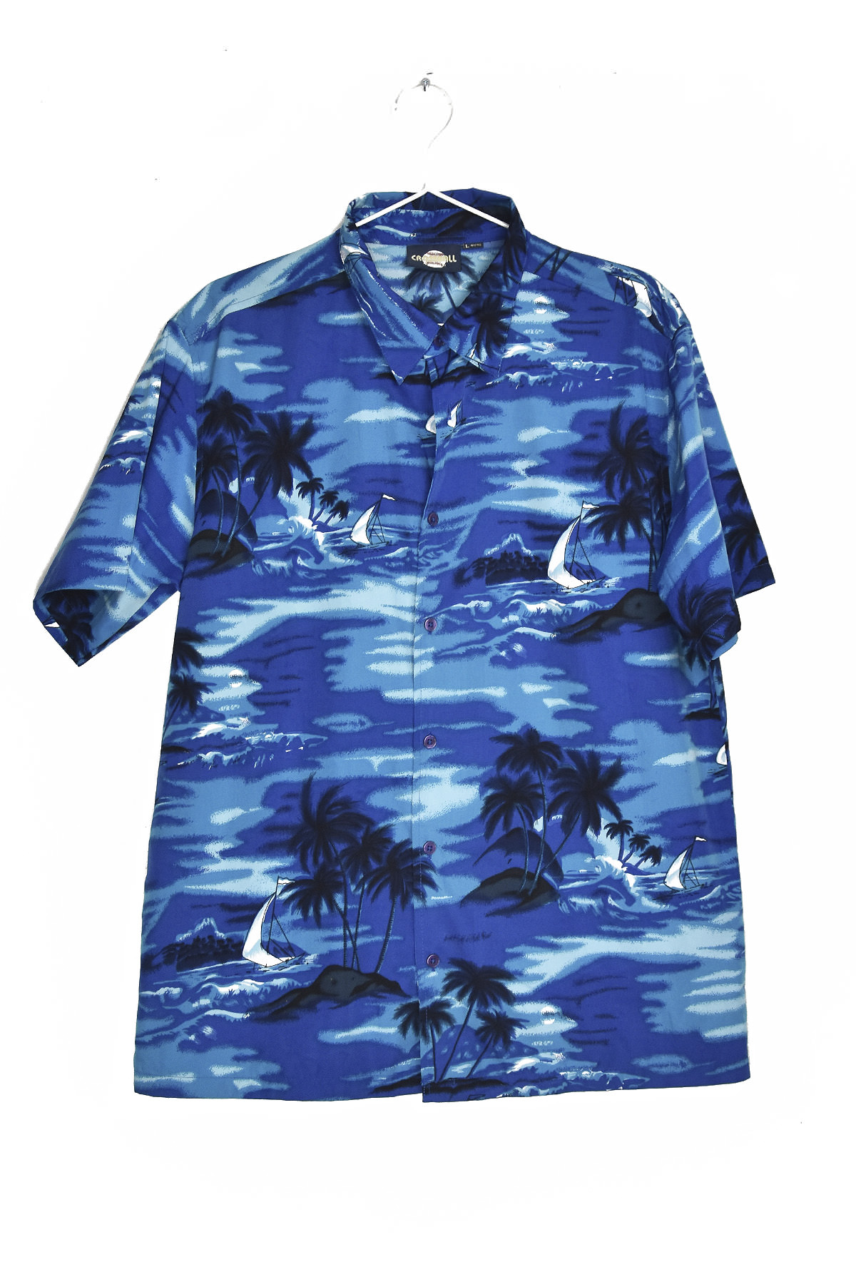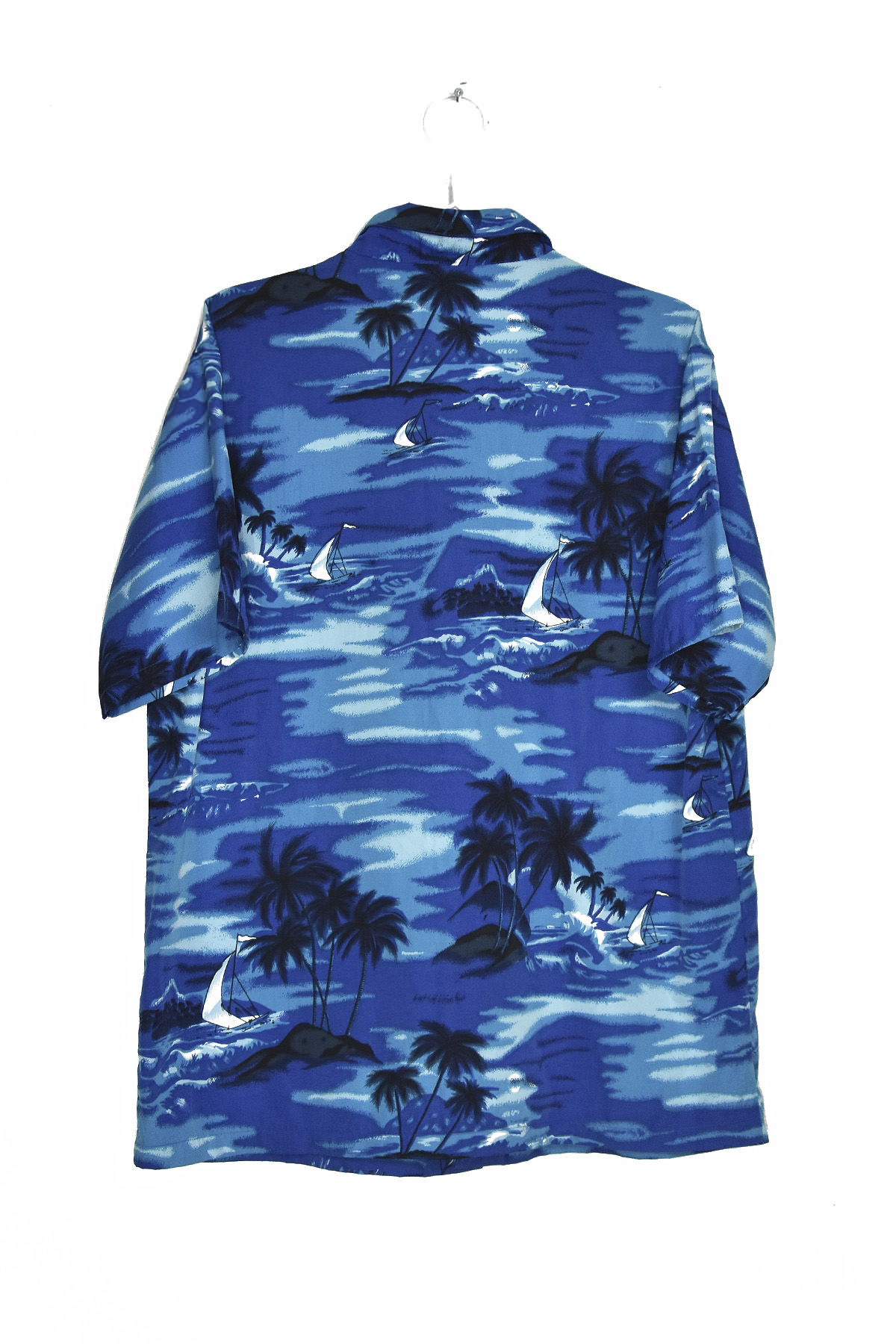 Escape to paradise with our Hawaii Blue Beach Sailboat and Palms Shirt in XL. Featuring a vibrant print of sailboats gliding across azure waters and swaying palm trees, this shirt captures the essence of a tropical getaway. Made from soft, breathable cotton, it offers all-day comfort and style. Its relaxed fit and classic design make it perfect for casual outings, beach days, or any occasion where you want to bring a touch of the islands with you.