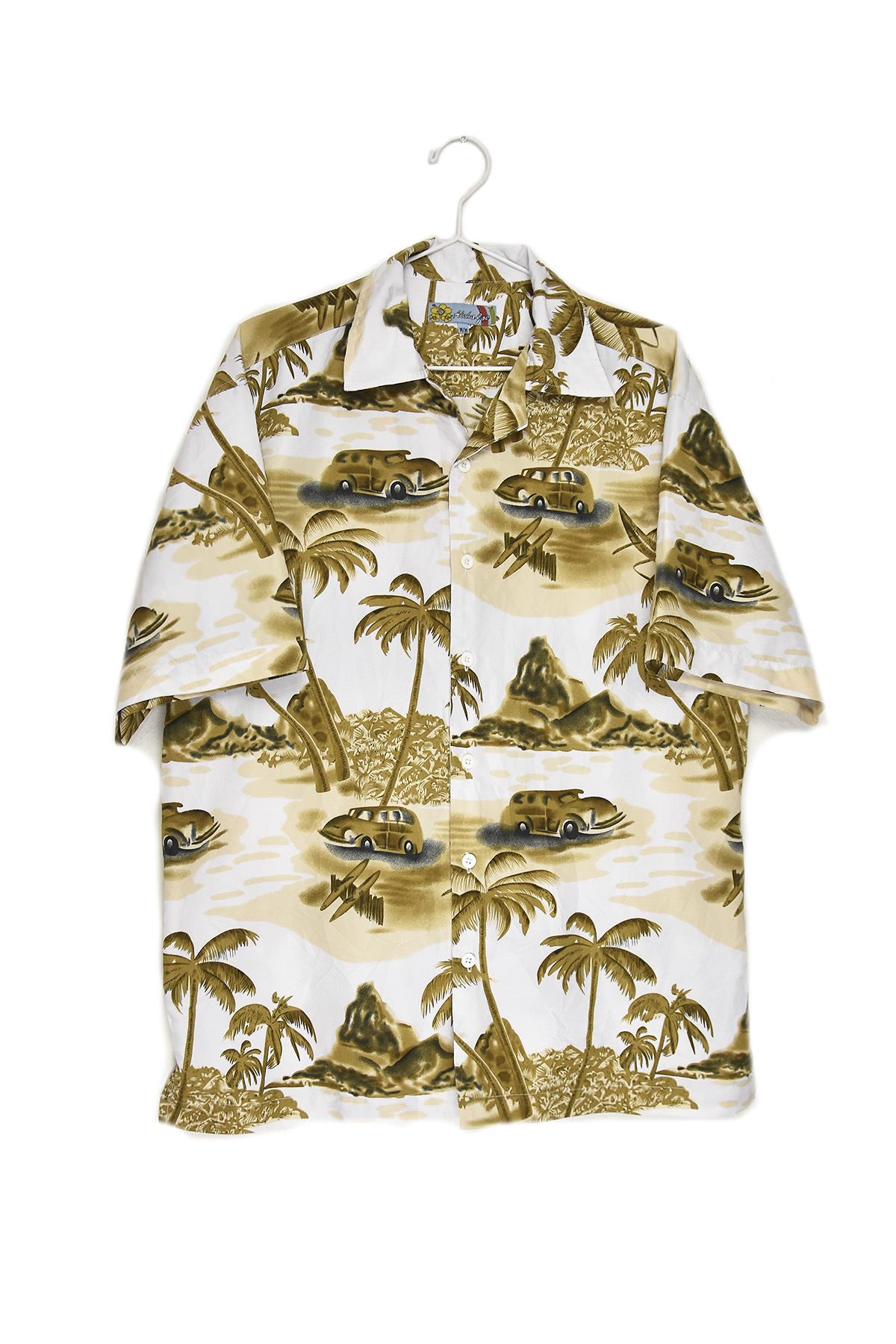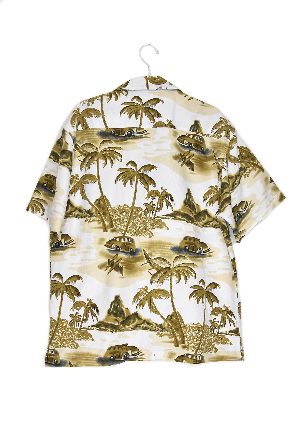 Hawaii Palms and Cars White and Bronze Shirt – M: