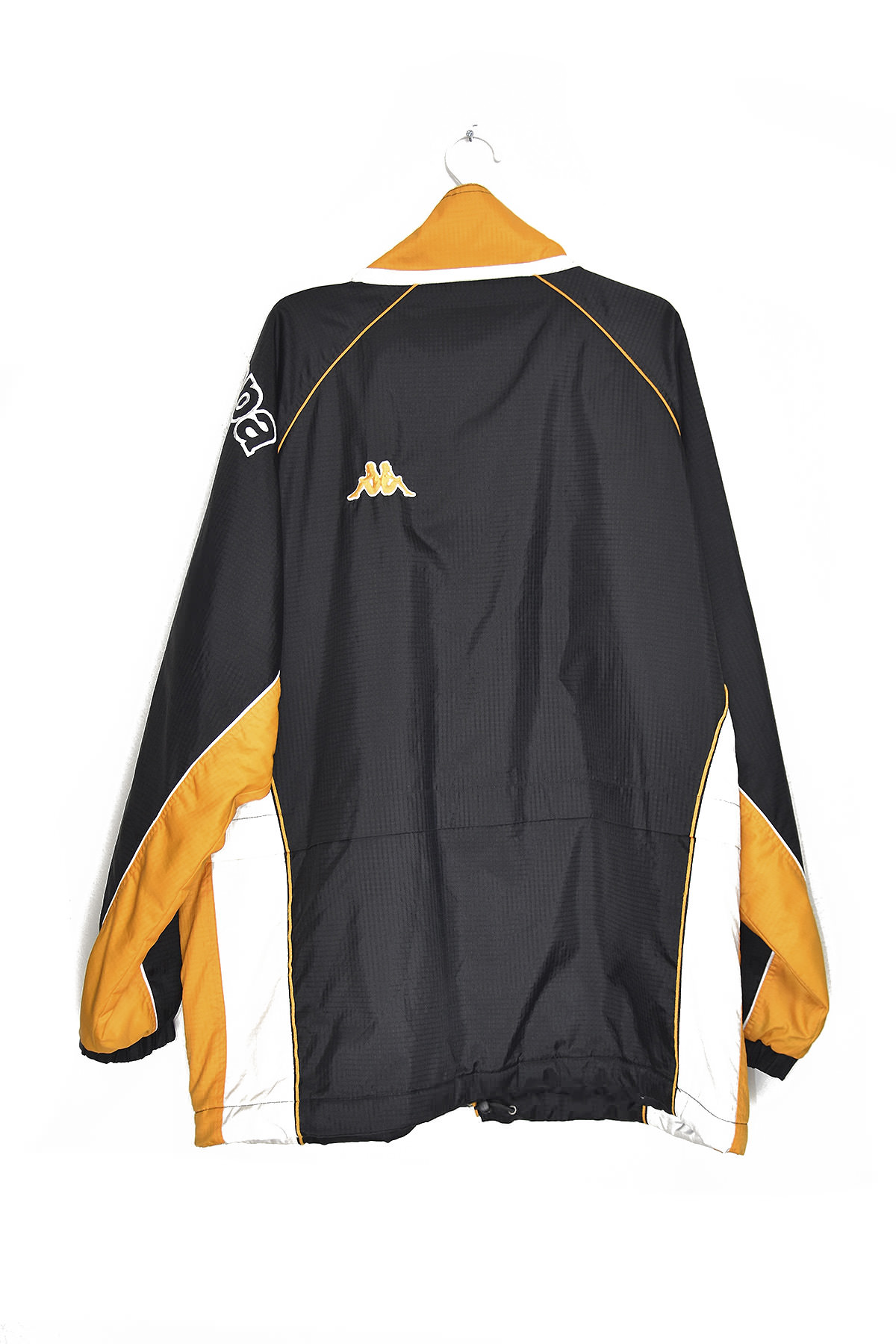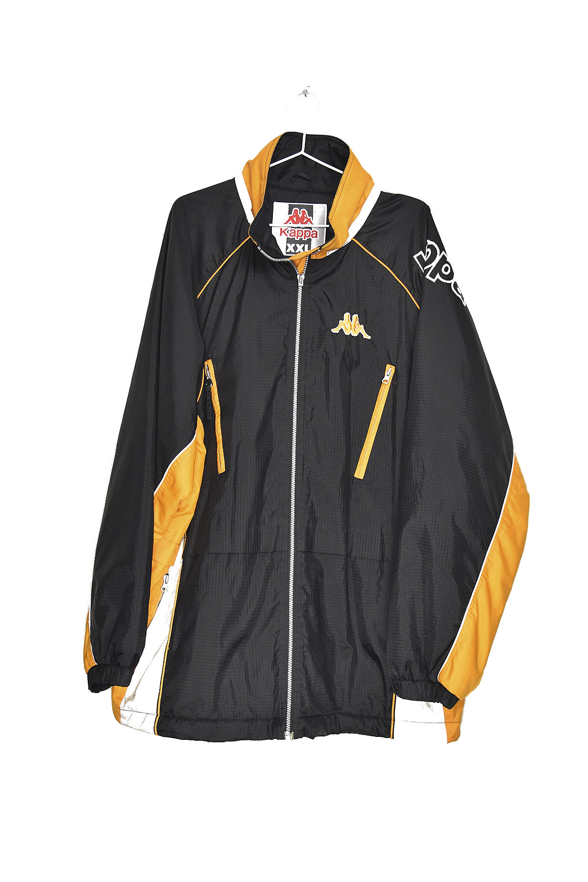 Kappa black, orange, and white winter jacket in size XL. Features include: