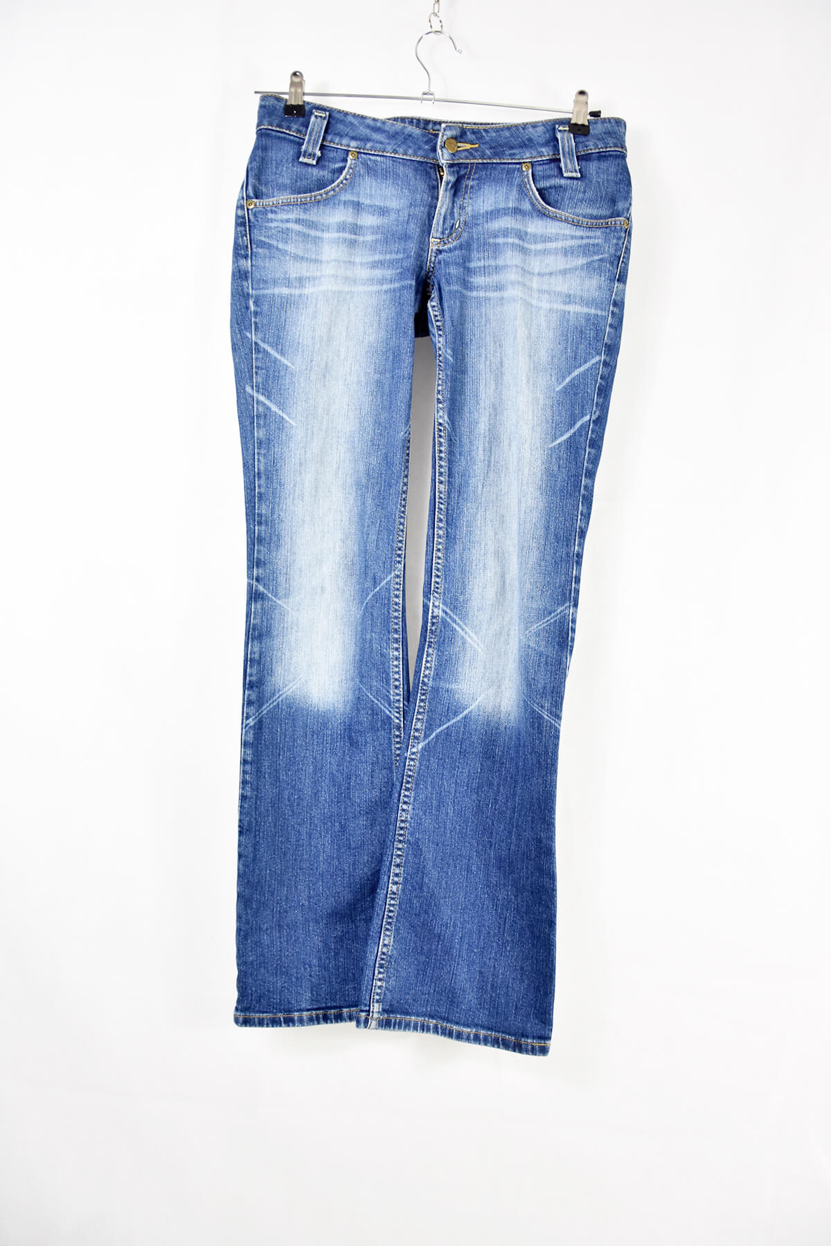 Embrace effortless style with Lee’s distressed blue flared jeans. Crafted from premium denim, these jeans feature a flattering flared silhouette that elongates your legs. The distressed details add a touch of edginess, while the classic blue hue ensures versatility. Perfect for casual outings or a night out, these jeans will elevate your wardrobe with their timeless appeal and comfortable fit.