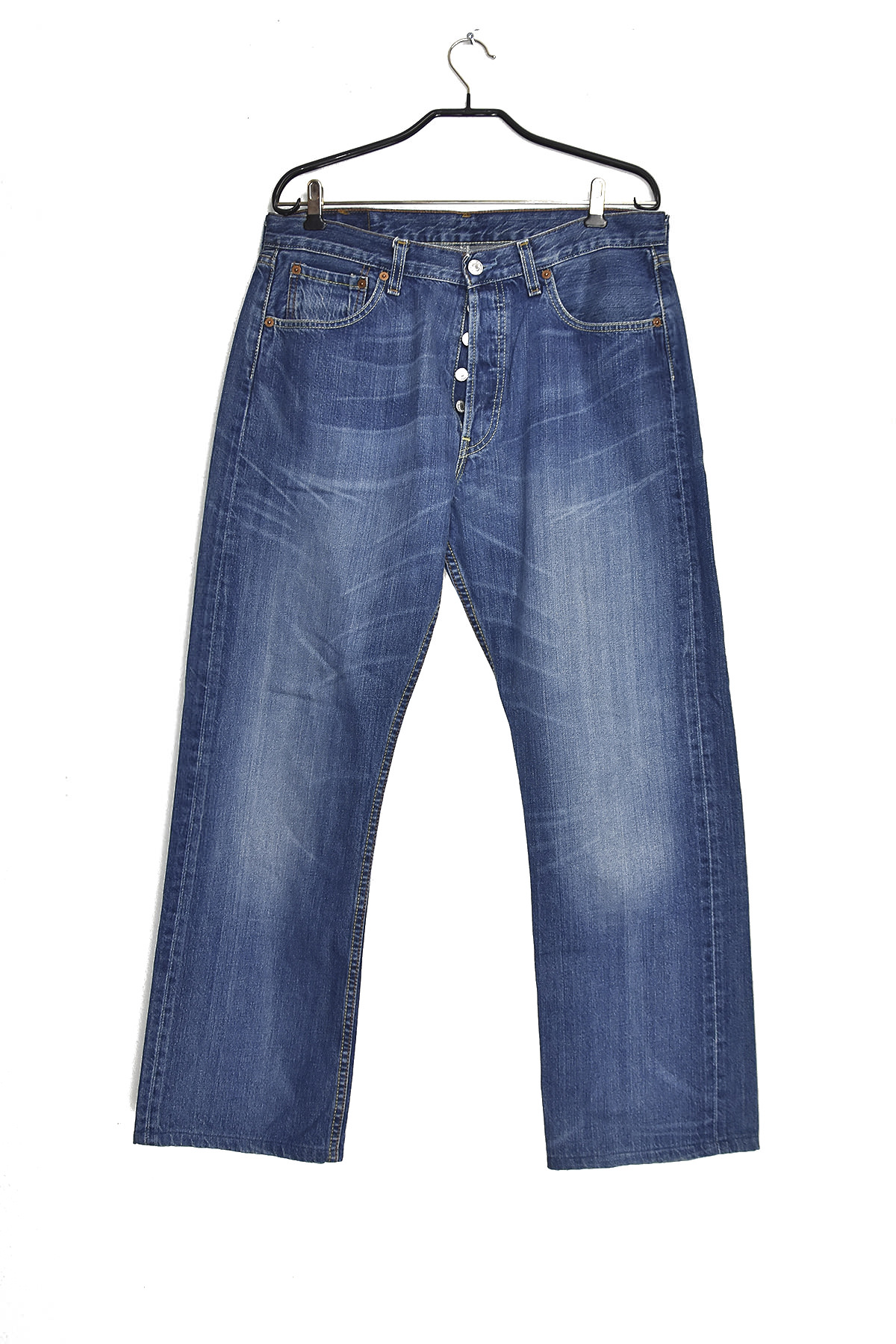 Levi’s 501 loose distressed blue jeans in 33/30 are a classic and stylish choice for any wardrobe. Made from durable denim, these jeans feature a relaxed fit with a distressed finish for a vintage look. The iconic Levi’s button fly and signature arcuate stitching add a touch of authenticity, while the loose fit provides all-day comfort. Perfect for casual outings or everyday wear, these jeans are a versatile addition to any collection.