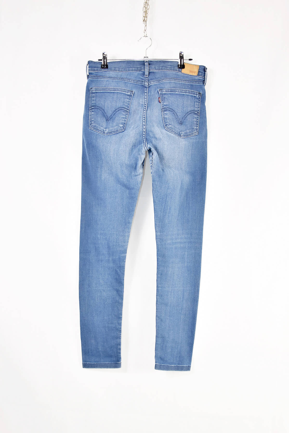 Levi’s blue skinny jeans in size 30/31 offer a flattering and comfortable fit. Made from premium denim, these jeans are durable and stylish. The skinny fit accentuates your curves, while the high-rise waist provides a flattering silhouette. These jeans are perfect for everyday wear or dressing up for a night out.