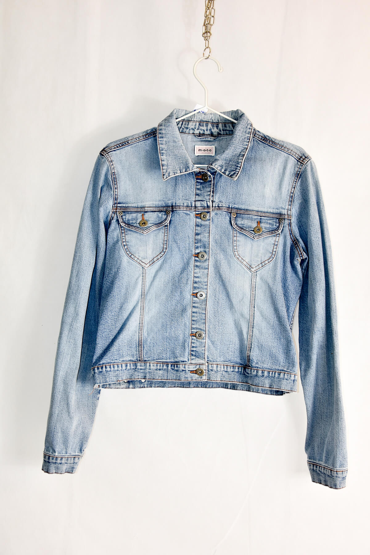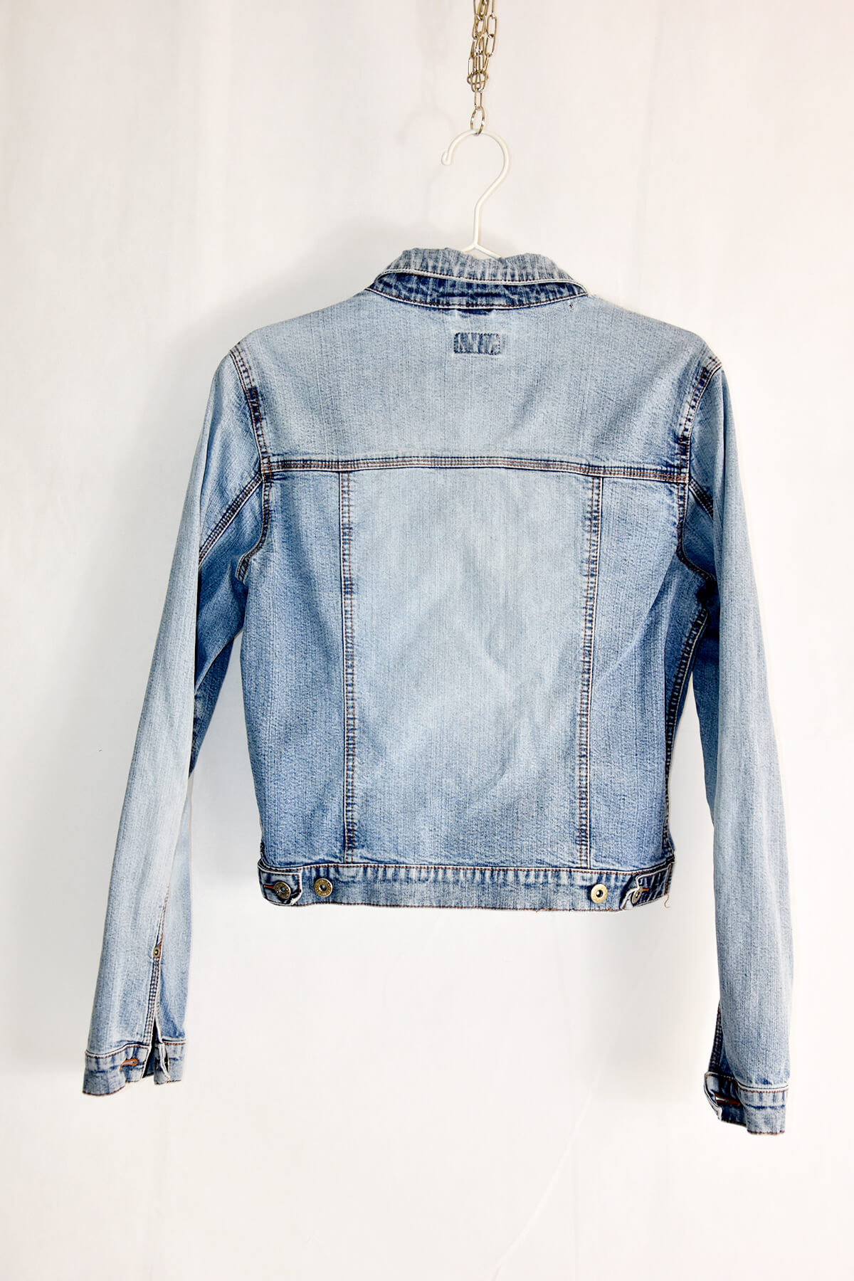 Elevate your style with our exclusive light blue denim jacket in XL. Crafted from premium denim, this jacket boasts a timeless design with small pockets that add a touch of sophistication. Its relaxed fit ensures comfort, while the light blue hue exudes a fresh and versatile appeal. Perfect for layering or wearing on its own, this jacket is a wardrobe essential that will turn heads wherever you go.