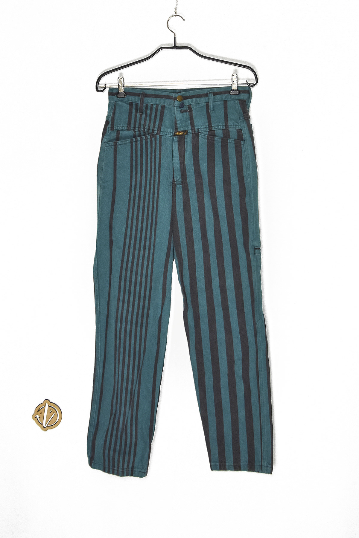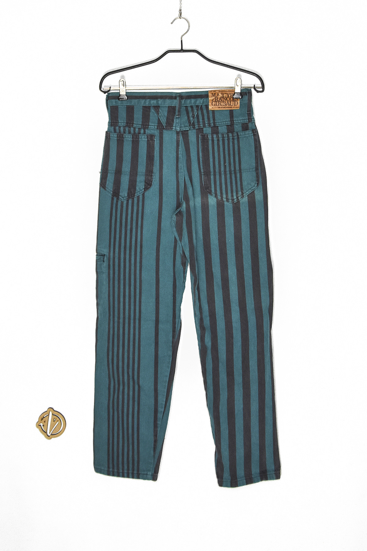 Marithe Francois Girbaud high waist jeans in green and black (T16) feature a flattering high waist design that elongates the legs. Crafted from premium denim, these jeans offer both comfort and durability. The unique color combination of green and black adds a touch of edginess to any outfit.