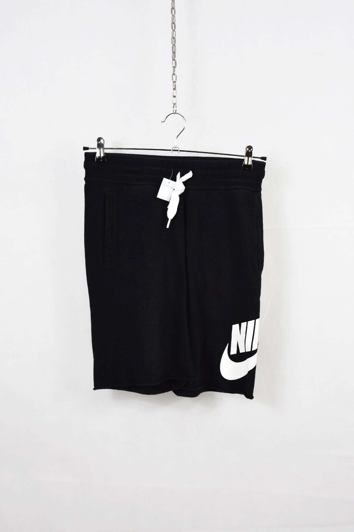 Nike’s black sweat shorts feature a bold white logo, offering a classic and sporty look. Made from soft and breathable fabric, they provide comfort and mobility during workouts or casual wear. The adjustable waistband ensures a secure and customizable fit, while the side pockets offer convenient storage for essentials.