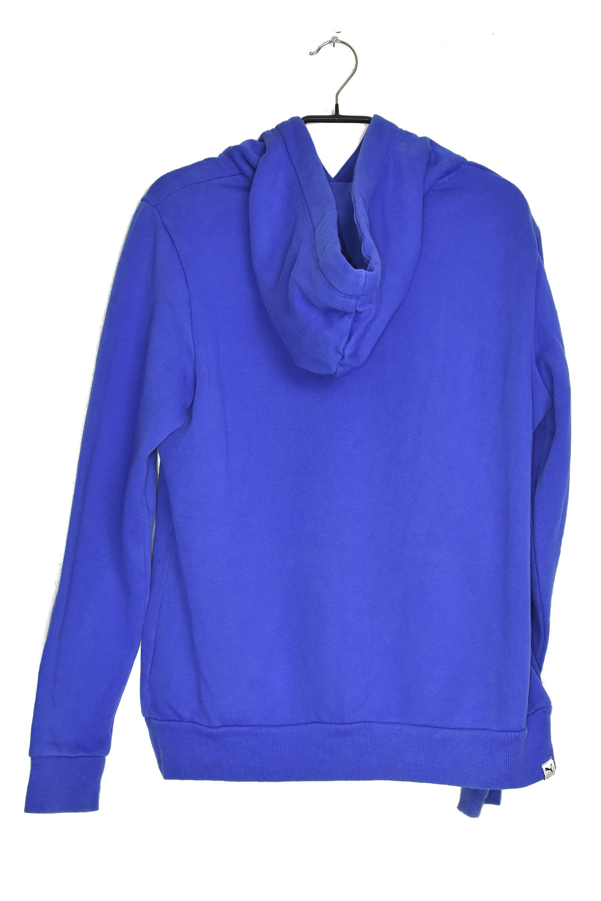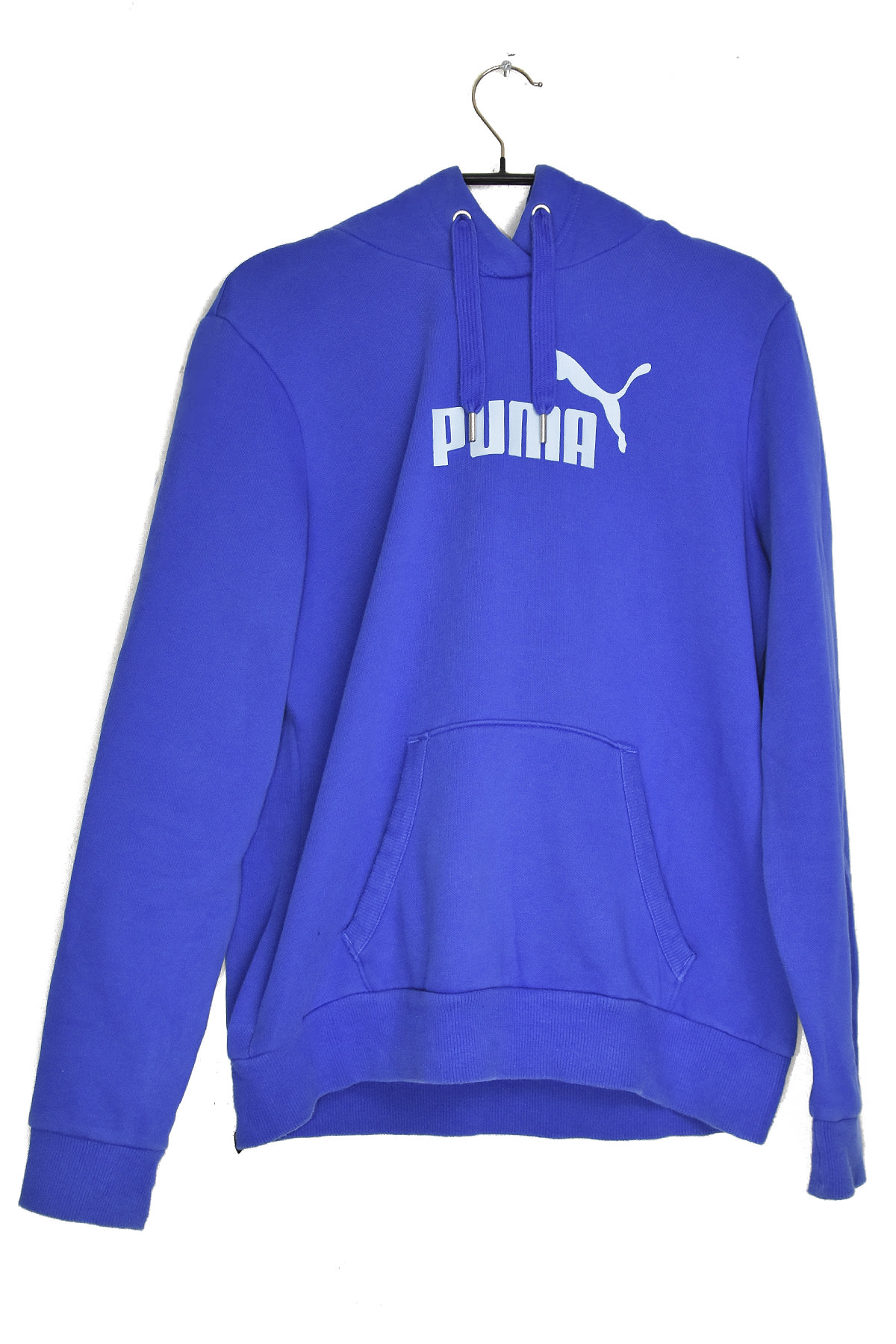 Puma’s vibrant blue hooded sweatshirt in size L offers a blend of style and comfort. Its soft and durable fabric ensures warmth and breathability, while the adjustable hood provides extra protection from the elements. The bold Puma logo on the chest adds a touch of athletic flair, making it a versatile choice for casual wear or workouts.