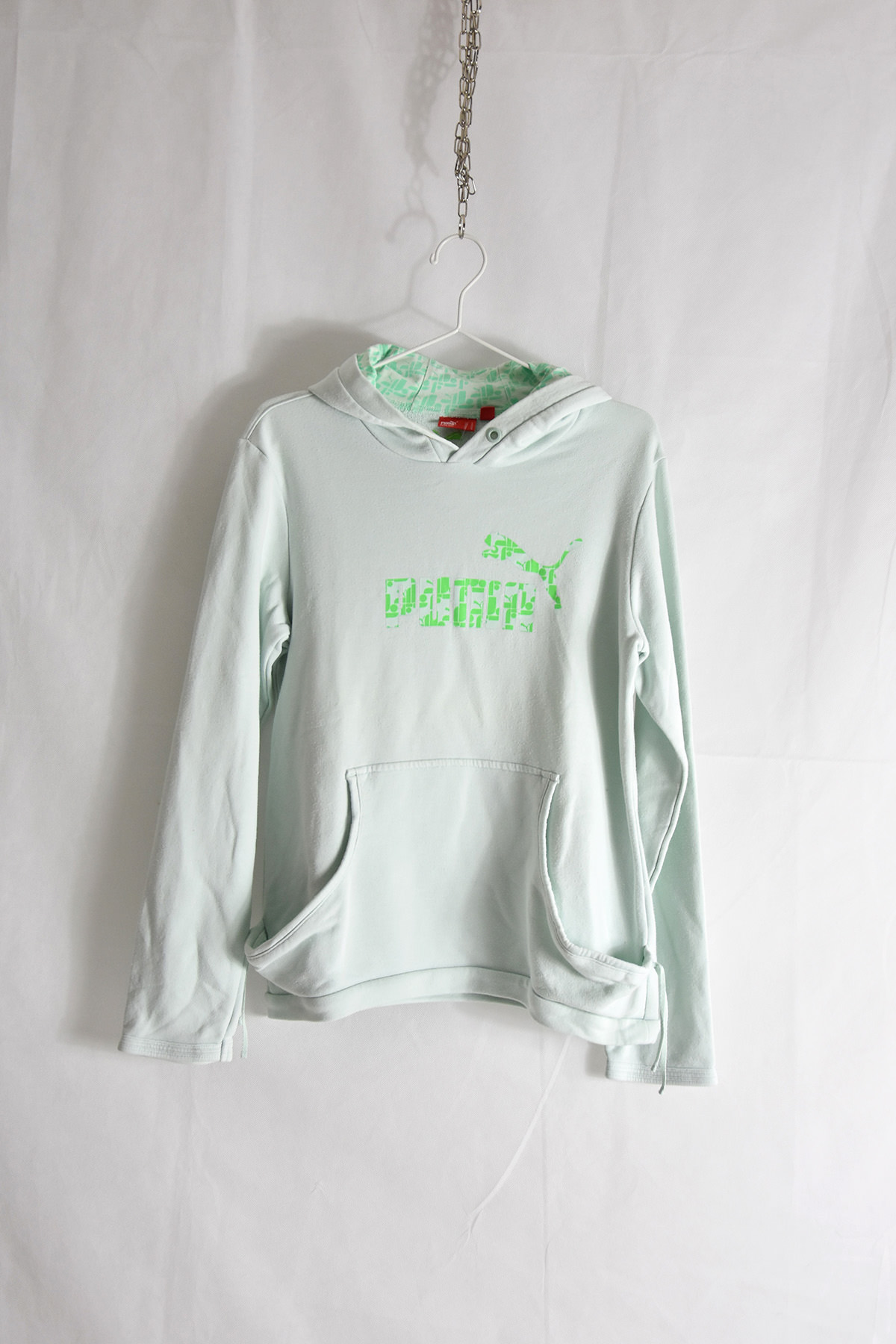 Stay cozy and stylish with the Puma Light Green Logo Print Hooded Sweatshirt. Crafted from soft and durable fabric, this sweatshirt features a bold Puma logo print on the chest, adding a touch of athletic flair. Its adjustable hood and ribbed cuffs provide warmth and comfort, while the kangaroo pocket offers convenient storage. Perfect for casual wear or post-workout relaxation, this sweatshirt combines comfort and style effortlessly.