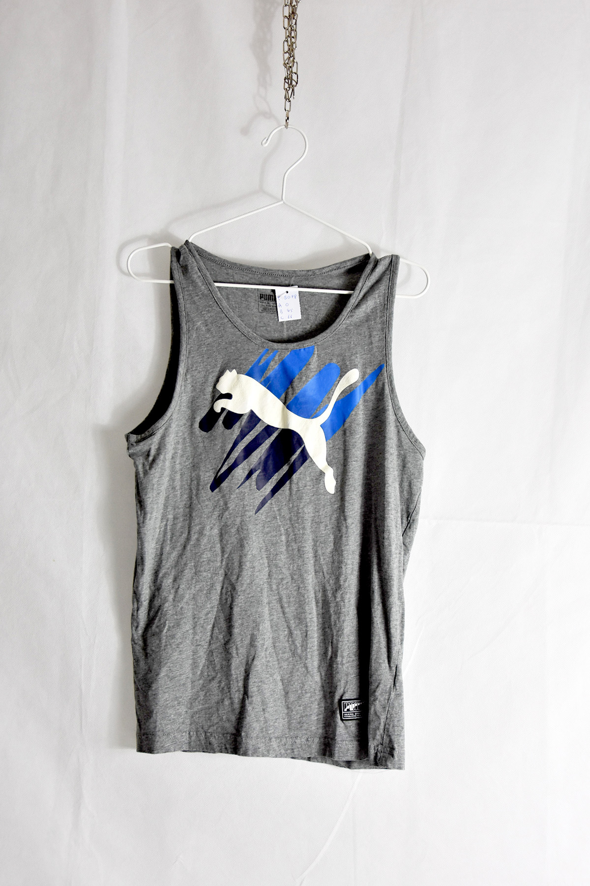 Puma’s retro-inspired tank top features a bold white logo print on a stylish grey background. Its soft and breathable fabric ensures comfort, while its classic design adds a touch of nostalgia to your wardrobe. Perfect for casual wear or workouts, this tank top combines style and functionality.