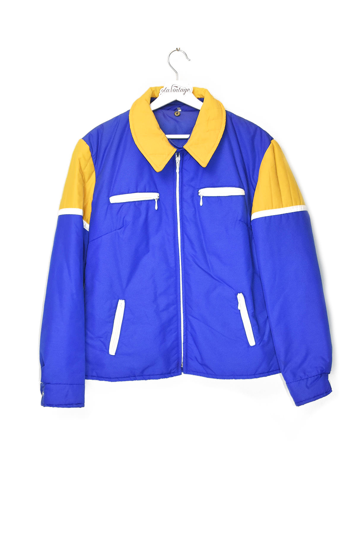Embrace the retro vibes with our eye-catching blue and yellow winter jacket. Its bold color combination and classic design evoke a nostalgic charm. Stay warm and stylish with its insulated lining, ensuring maximum comfort during chilly days. The durable construction and water-resistant fabric provide reliable protection against the elements. Stand out from the crowd with this unique and timeless piece that combines fashion and functionality.